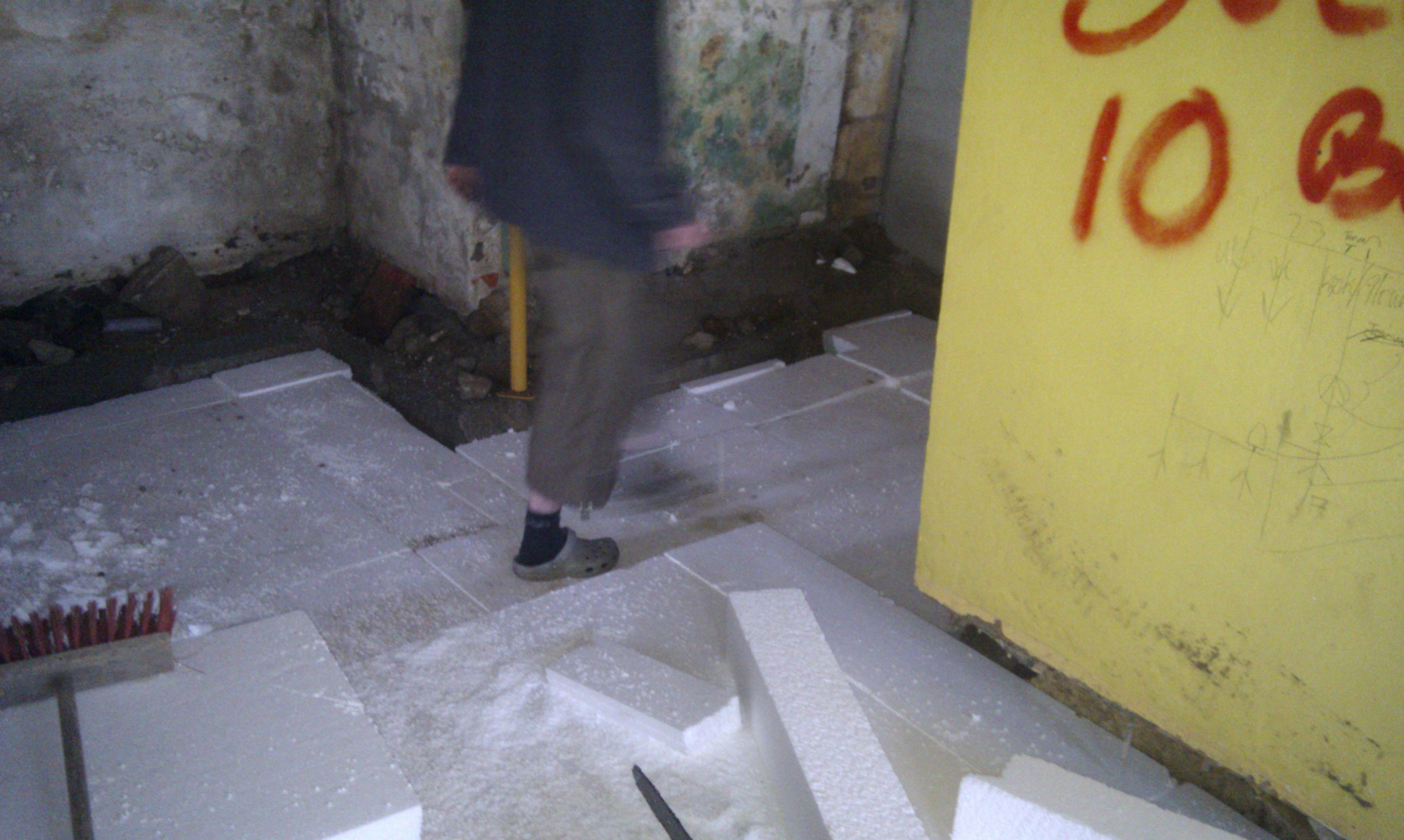 Vi har haft vores frygt for om flamingo ville flyde ovenpå det flydebeton, og truffet alle mulige foranstaltninger for at det ikke skal ske – f.eks. var alle flamingo plader fæstnet sammen med Gaffa tape, der var lagt dampspær i yderkanterne som også vil fungere som Radon spær.