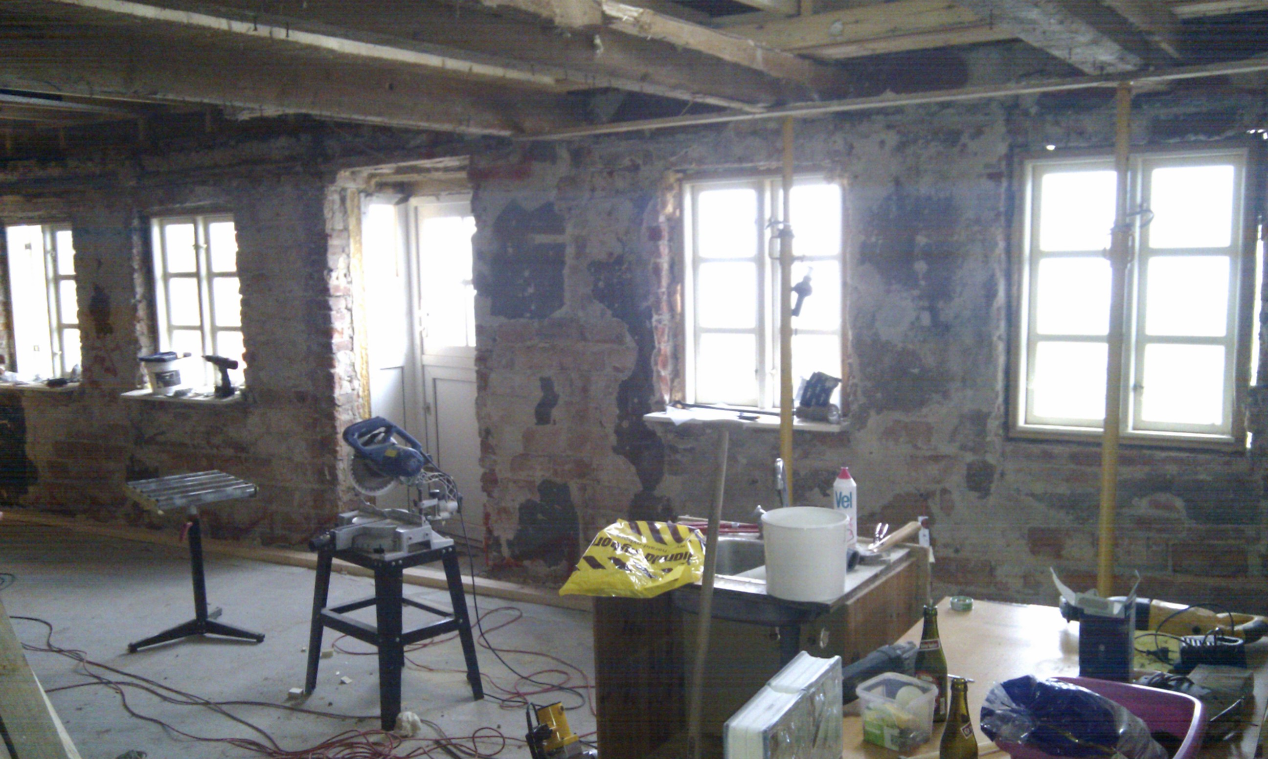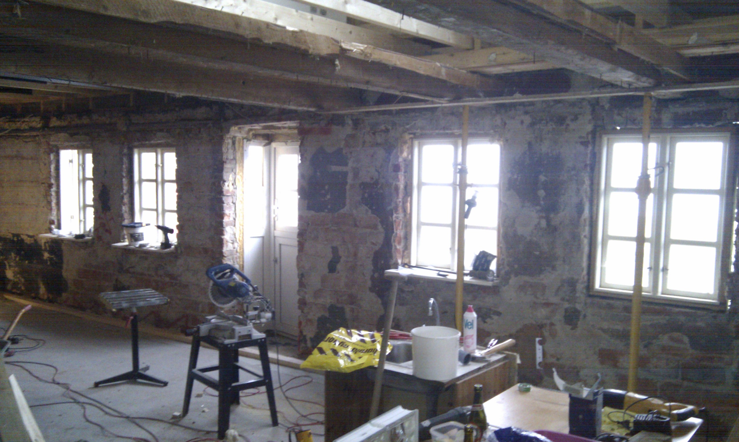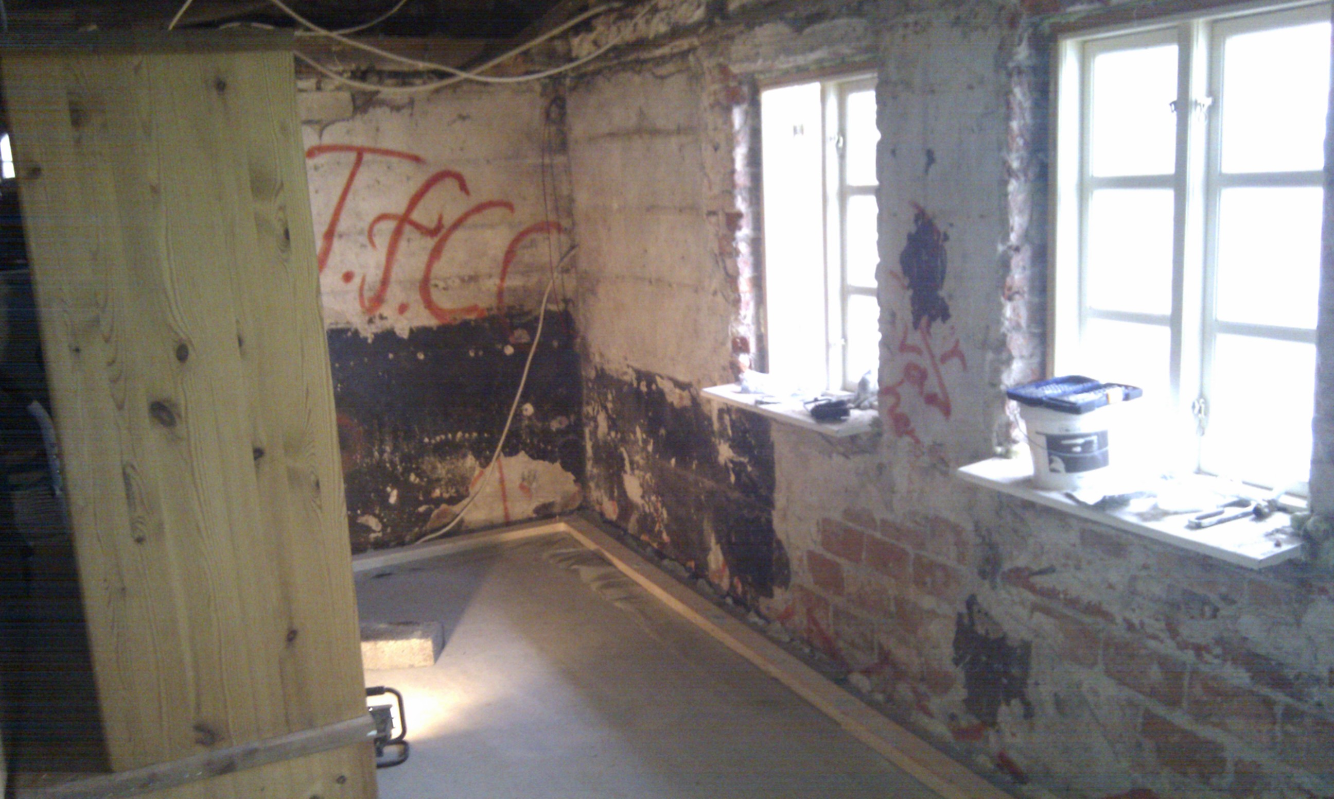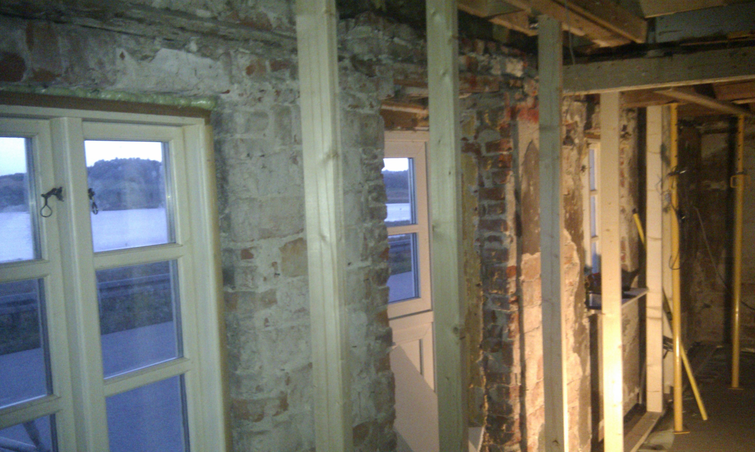 Alle reglar er bevidst lavet et par mm for lange, hvorved vi sikrer at væggen vil blive aflastet en smule, og det vil være sundt for en væg der er langt over 100 år gammel.