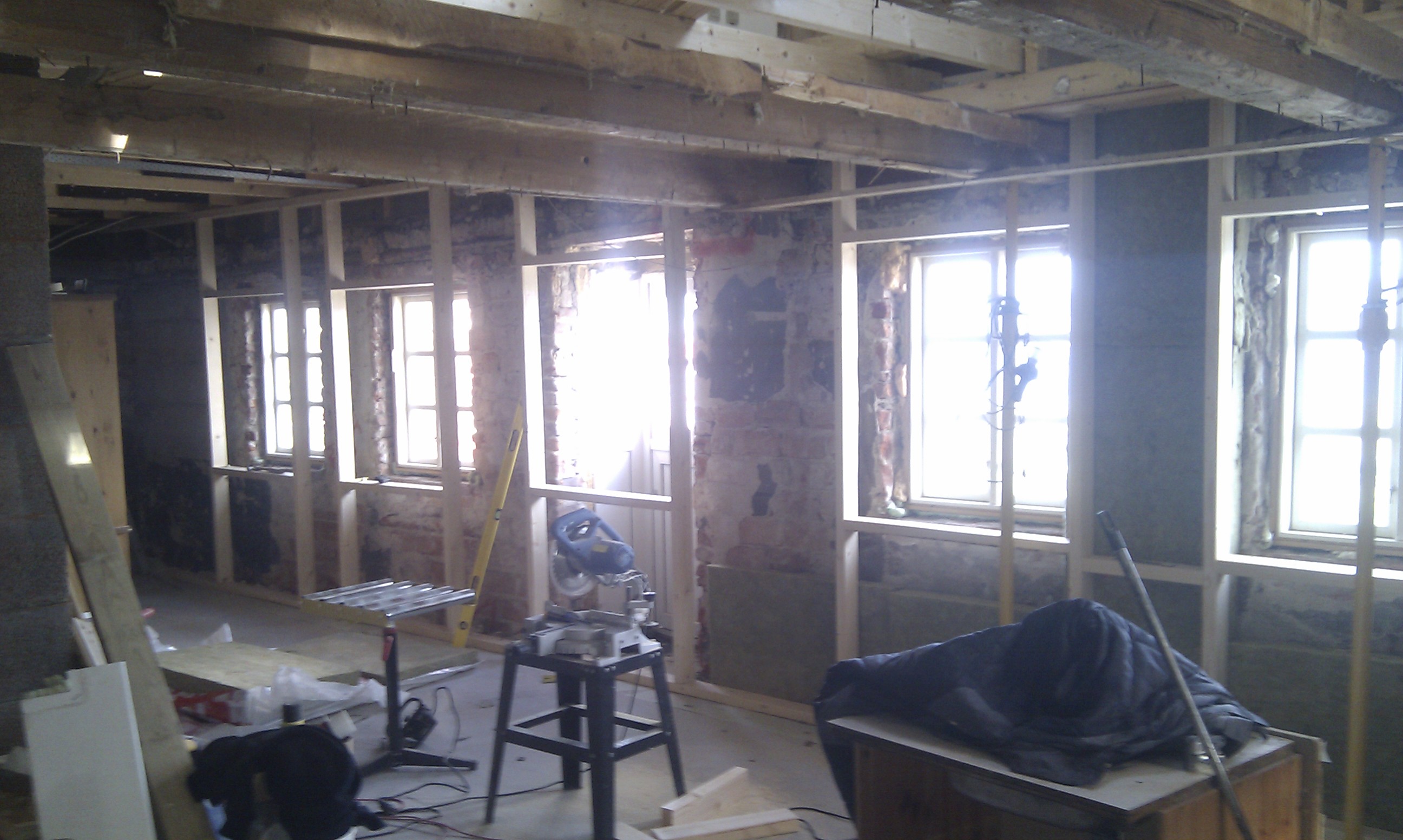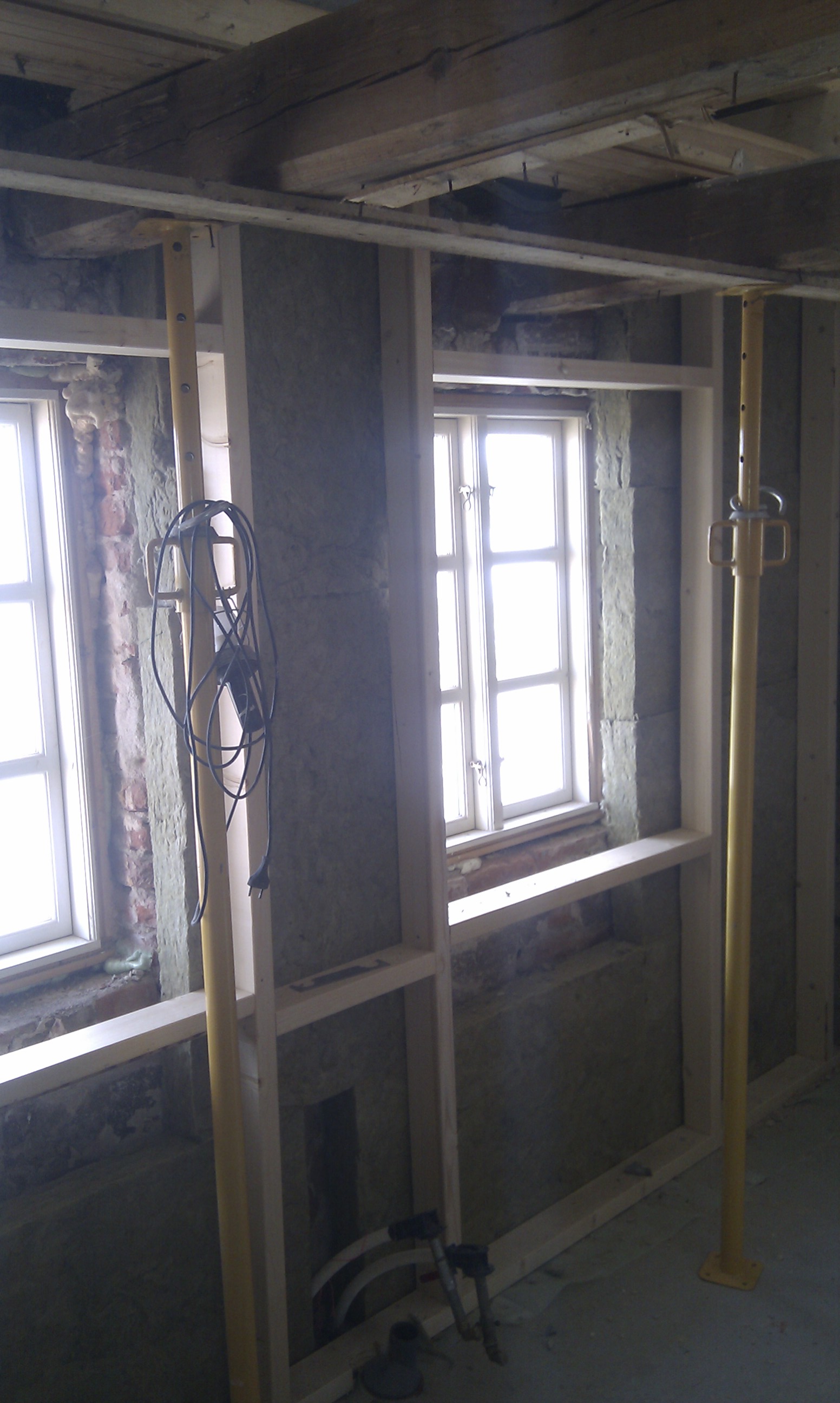 Så blev det tid til at få sat reglar op indvendigt og få isoleret huset godt og grundigt.