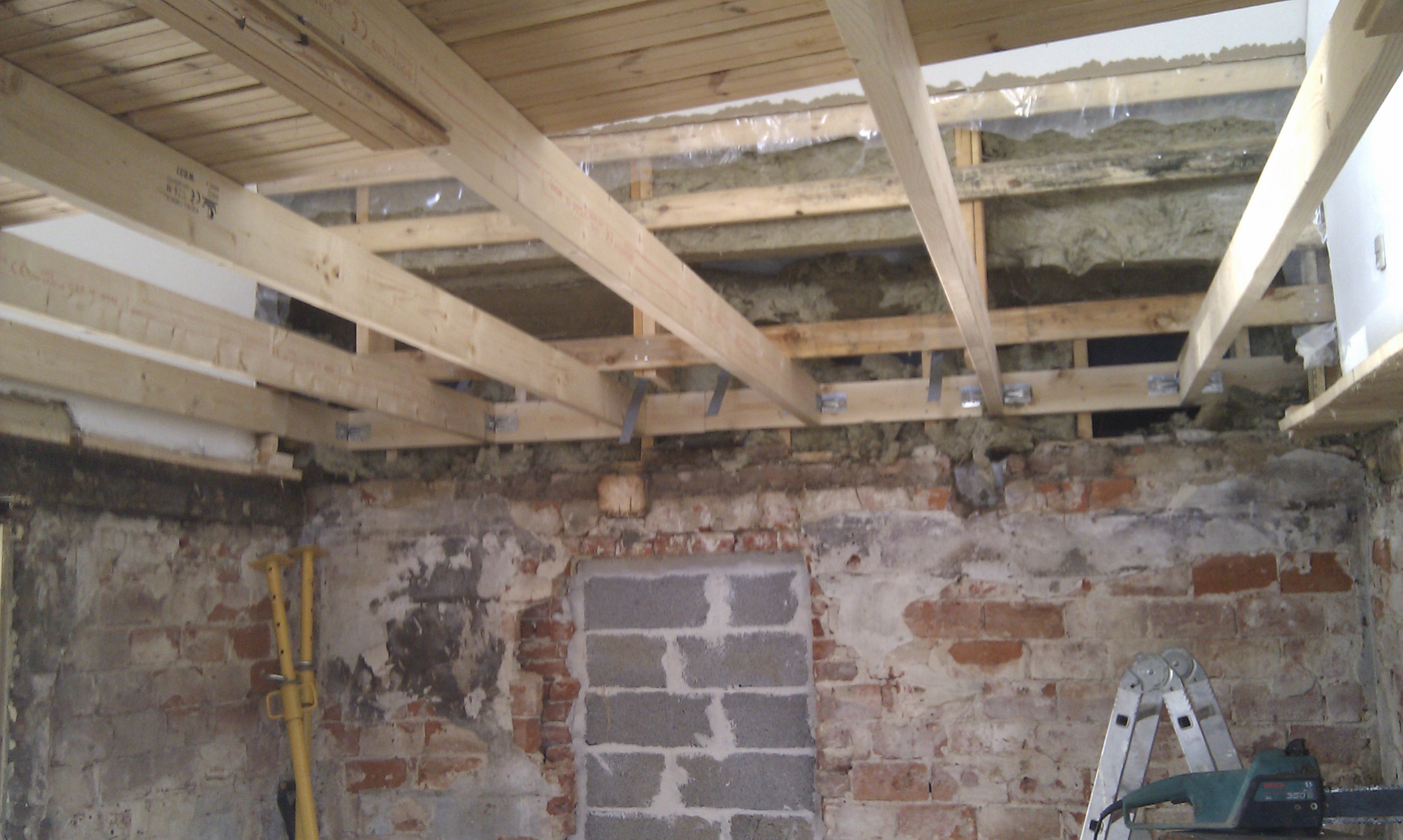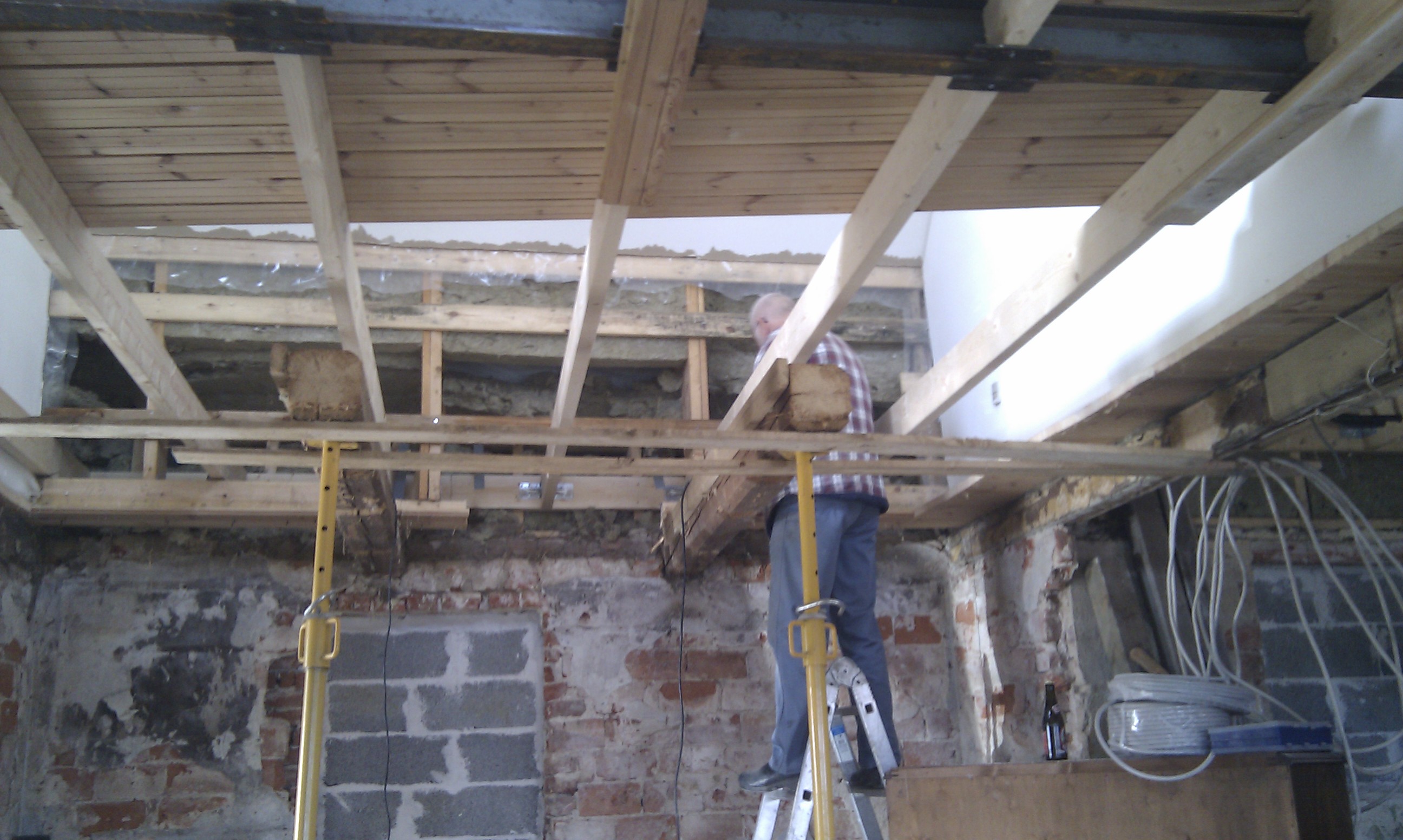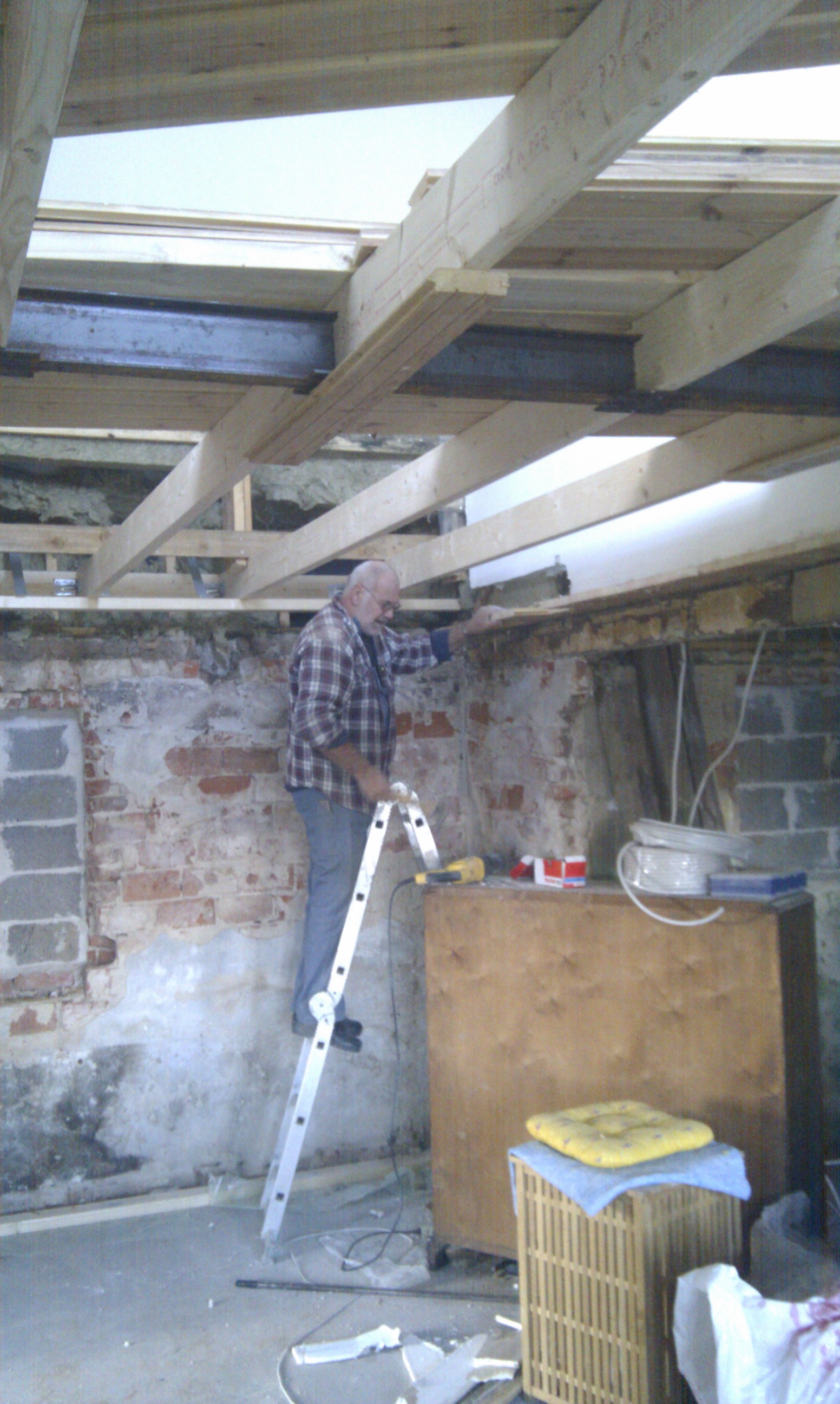 Som det sidste led, i at hæve loftet – har far igennem hele lørdag, kæmpet med at få fjernet de sidste to resterende bjælker. Selvfølgelig med hjælp fra såvel Jan og undertegnede. Det sværeste var i princippet at fjerne de bjælker – da det skal gøres fornuftigt, håndværksmæssigt korrekt og gennemtænkt. Hvilket ikke så godt passer til mig 🙂
