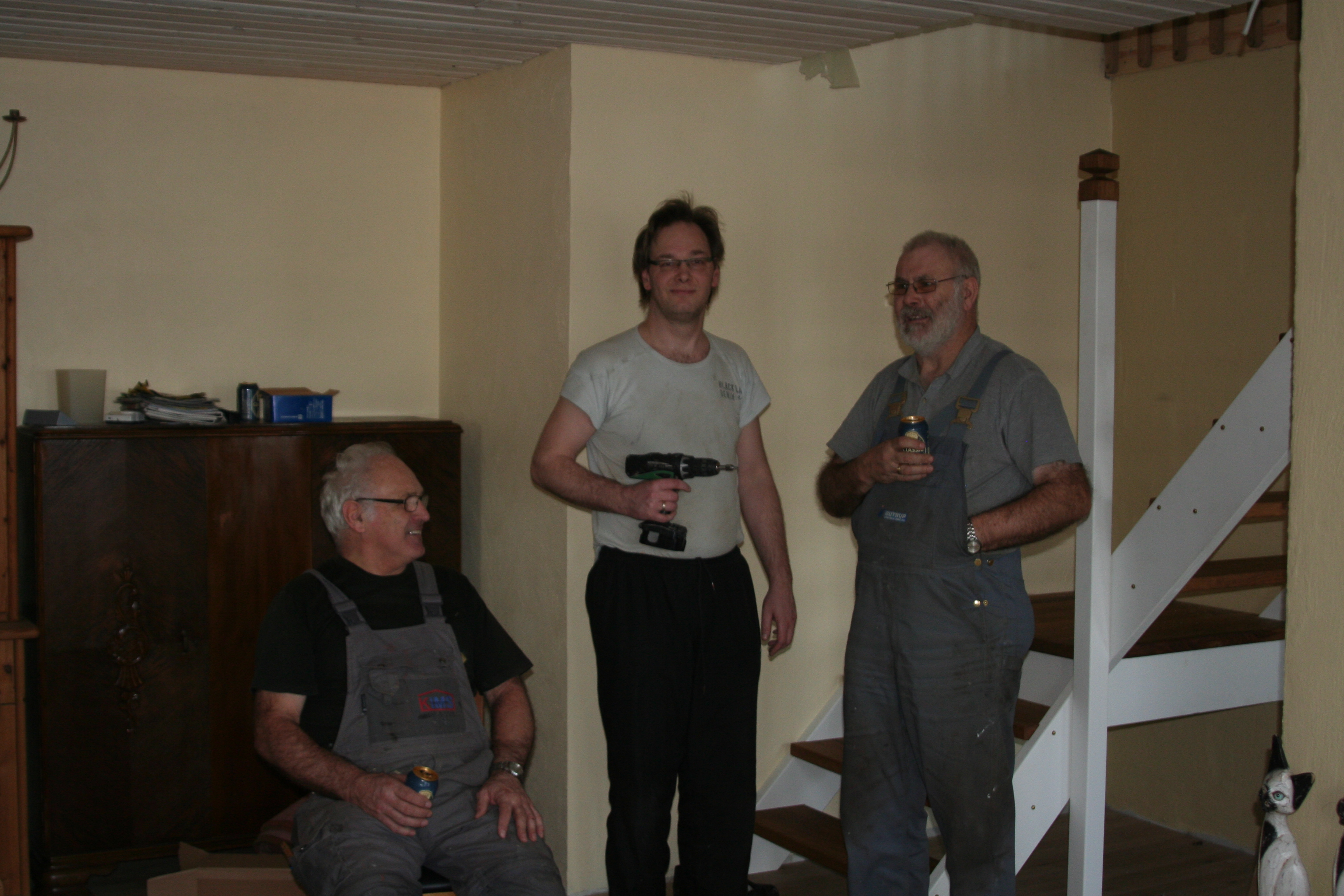 På billedet til højre kan man se markeringen med isolertape hvor vi havde besluttet at ovnen skulle være – og den gamle brændeovn.