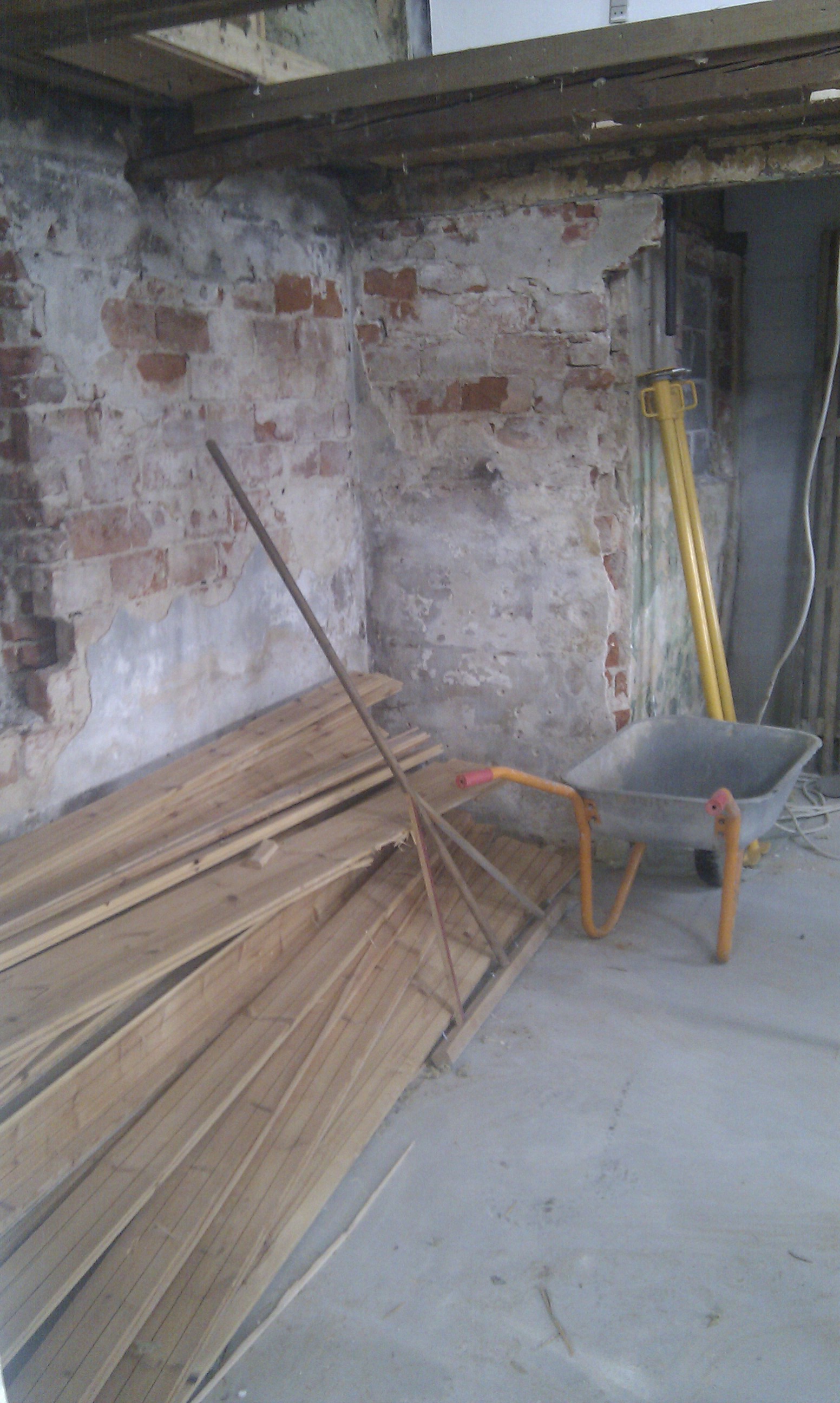 Alle reglar er bevidst lavet et par mm for lange, hvorved vi sikrer at væggen vil blive aflastet en smule, og det vil være sundt for en væg der er langt over 100 år gammel.