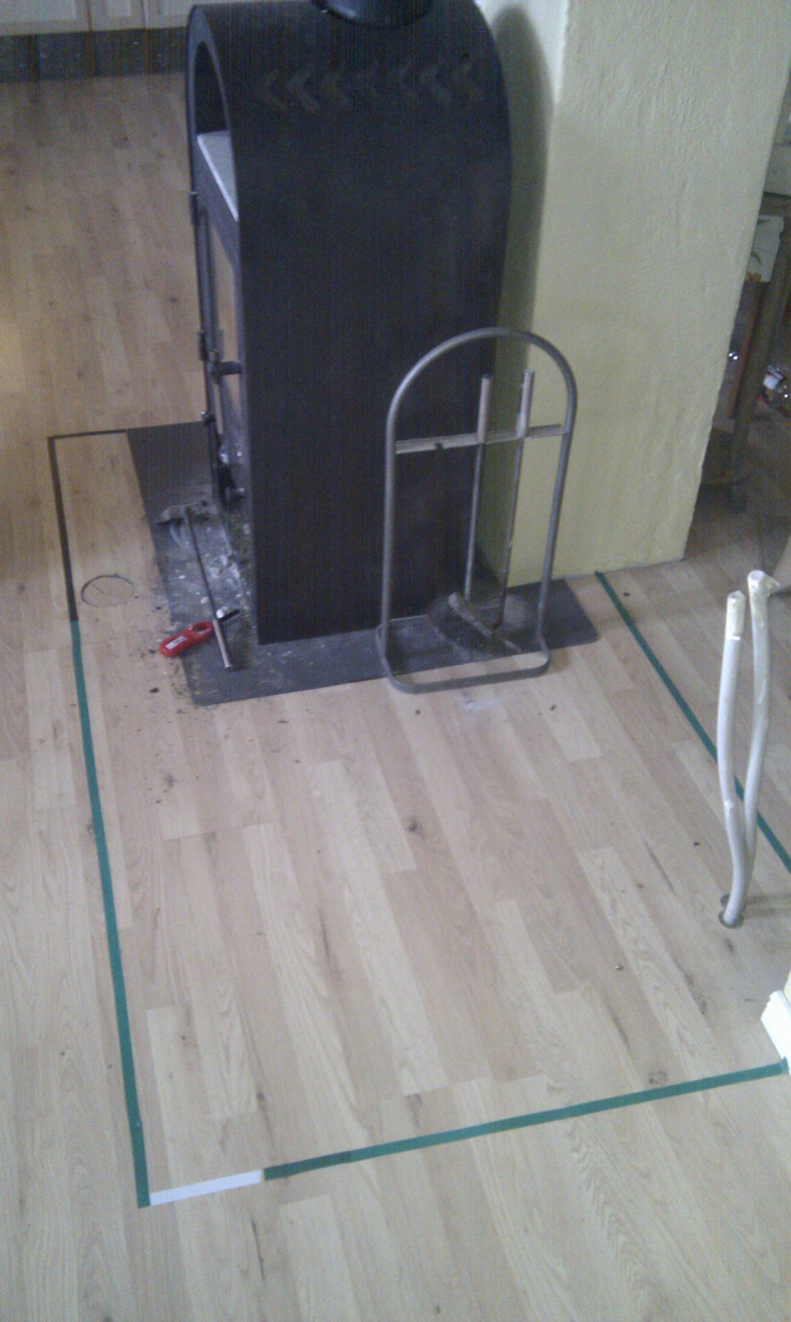 Ovnen vejer cirka 3500 kg, så det har været vigtigt at sikre sig at gulvet kan bære vægten – se støbning af fundament til masseovn.