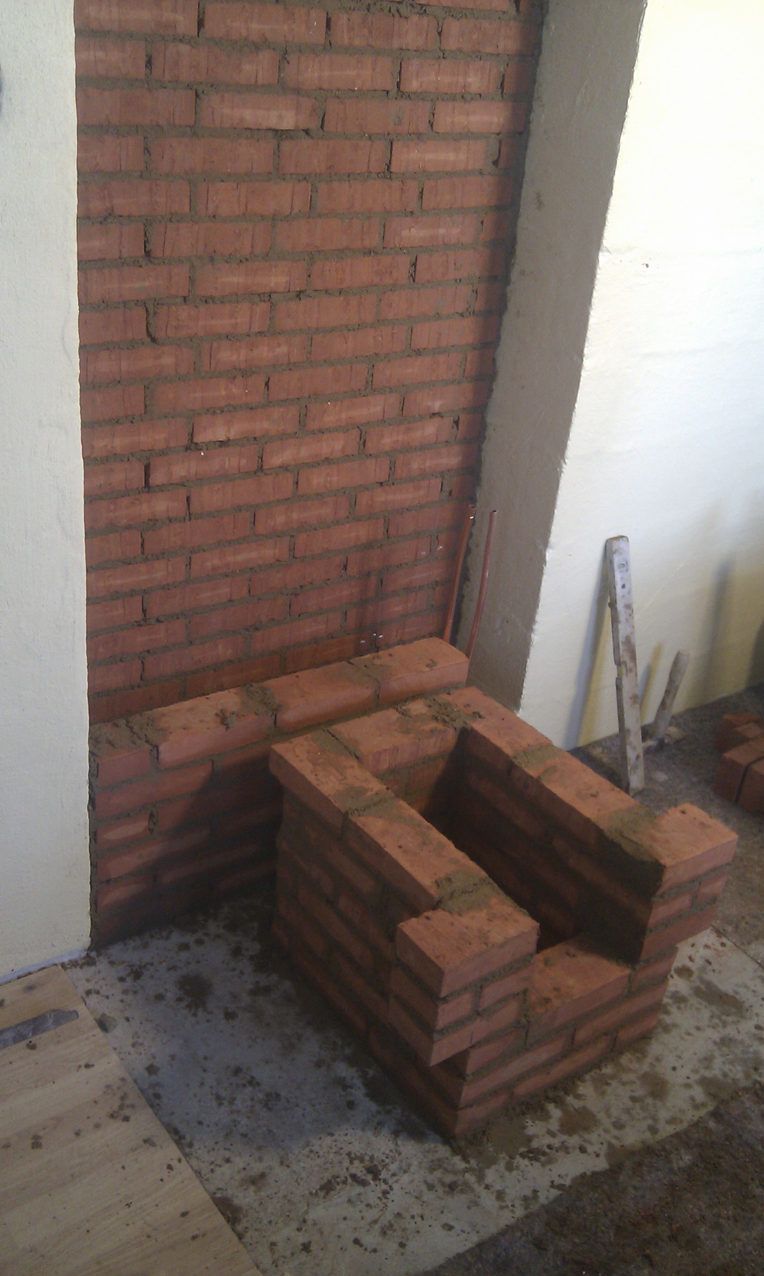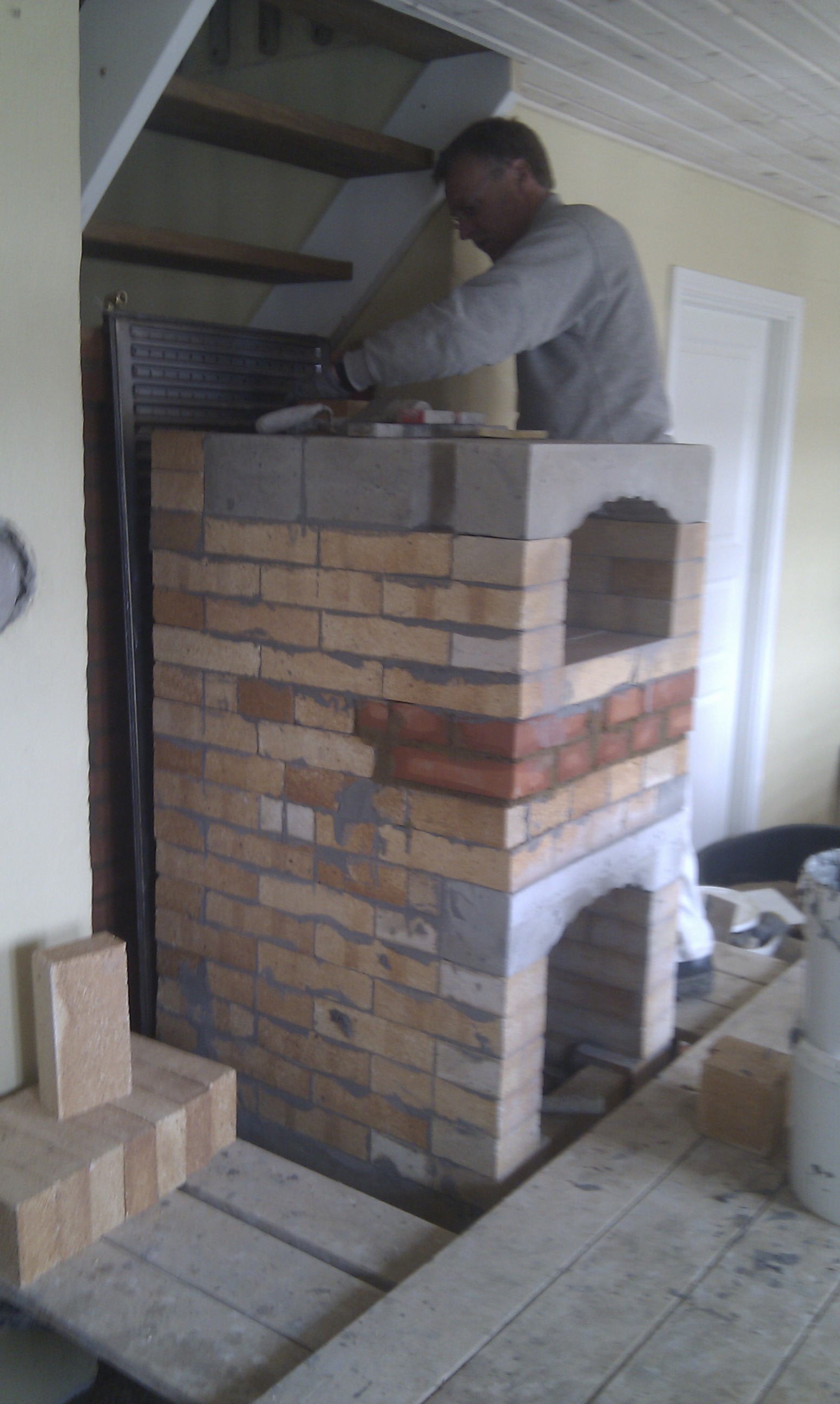 Bagvæggen mures først op, da masseovnen skal stå ind under trappen.