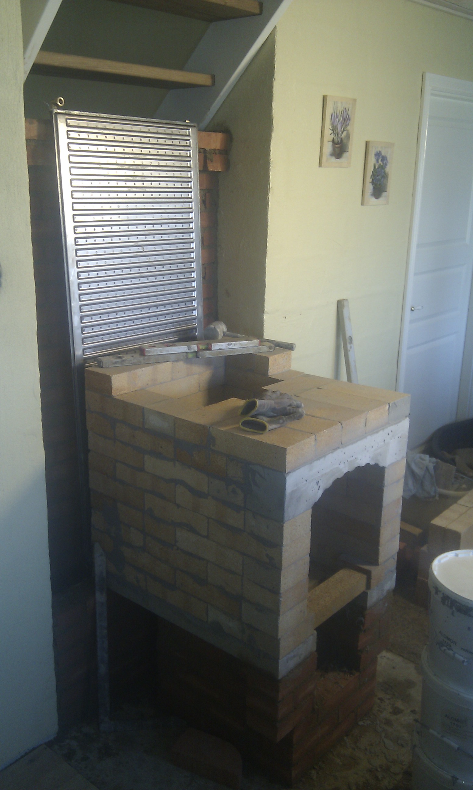 Så er masseovnen’s askekammer og bagvæggen bygget op.