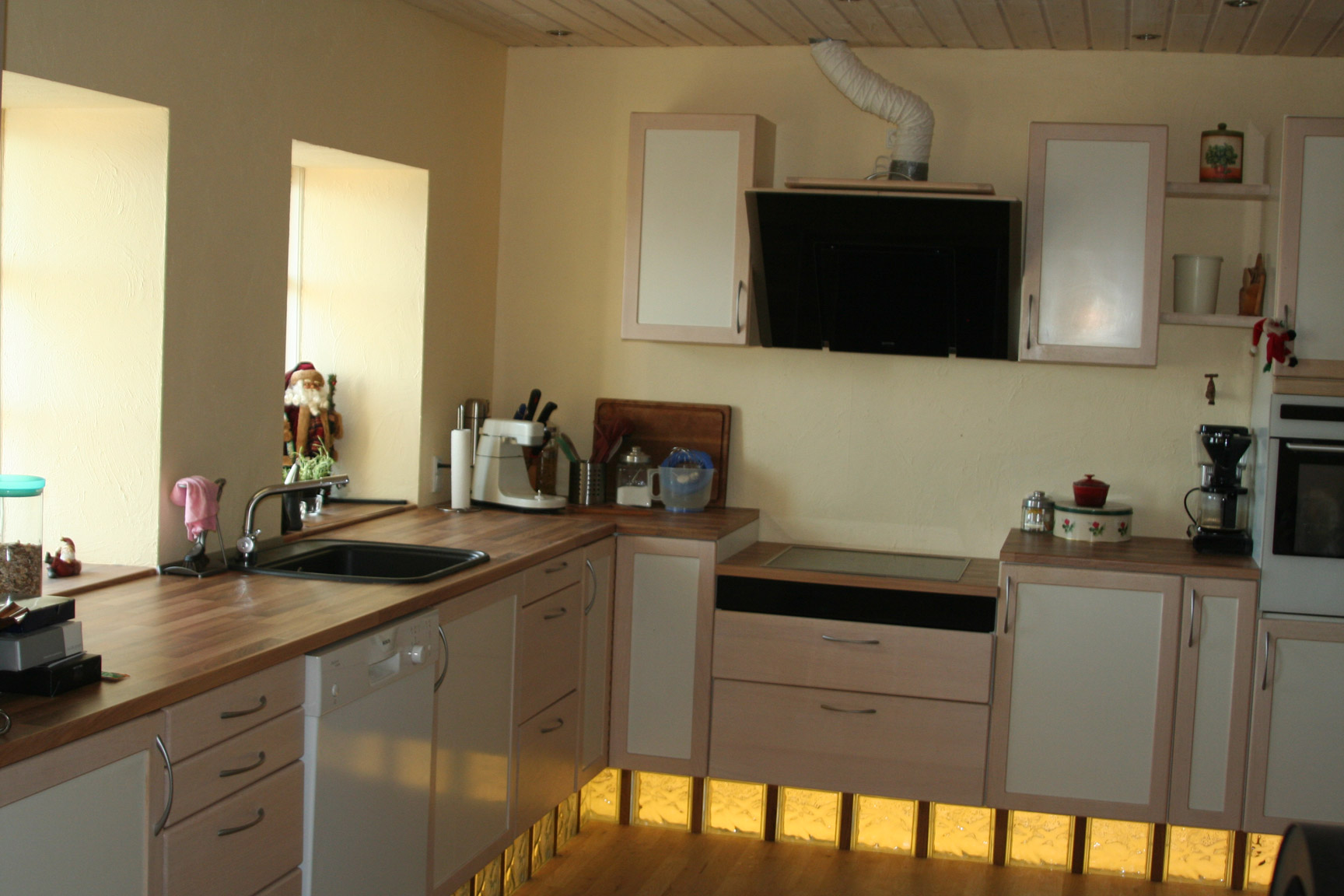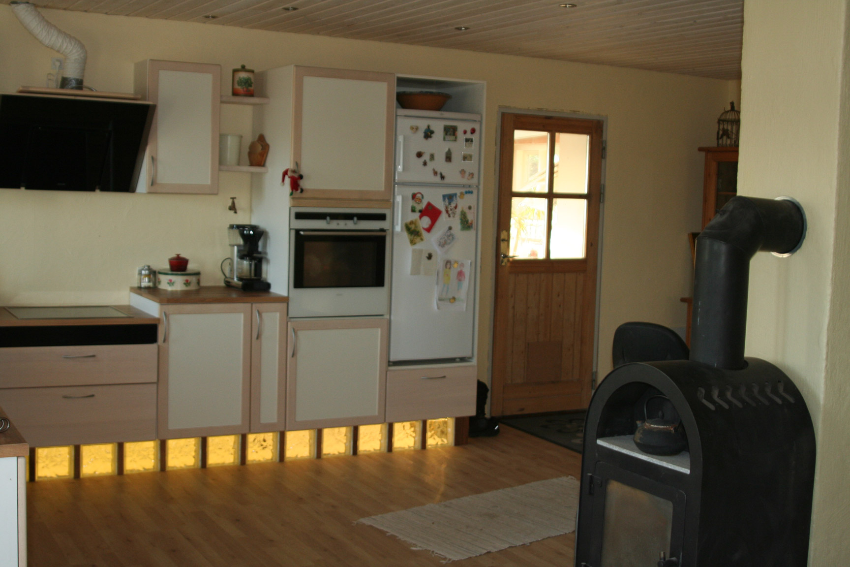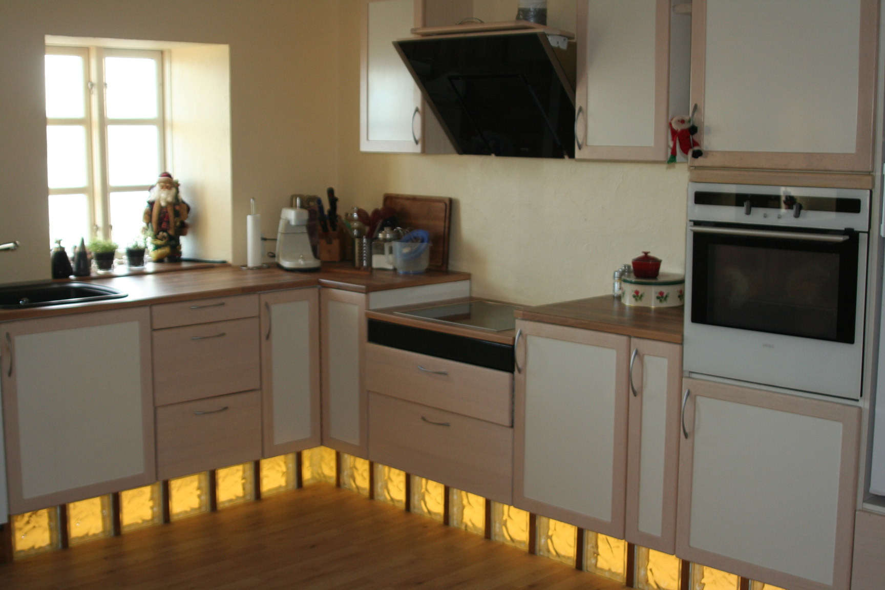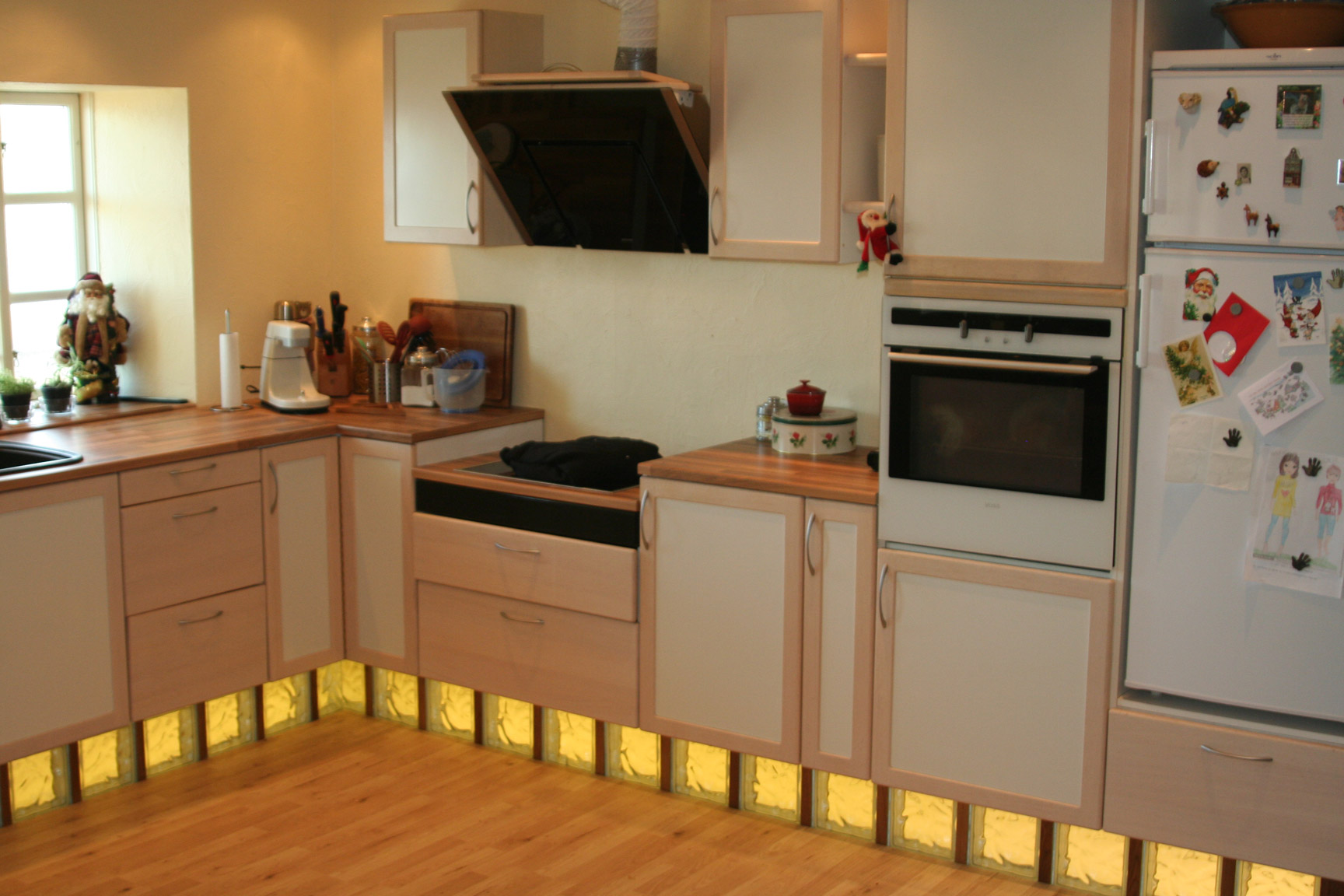 Jeg lavede en tidligere tråd her på VoresByg.dk med kaldet Glasbyggesten som sokkel i køkken – med lys i. Men der er gået nogle måneder fra ideen først begyndte at spille til jeg endelig fik det til at blive til noget.