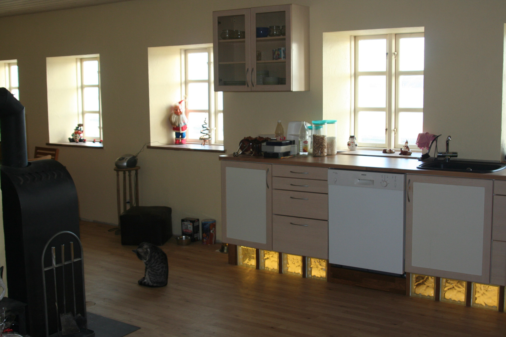 Et billede taget lidt på afstand – som det kan ses her, er der et *hul* i soklen, som der egentlig ikke burde være – men dette hul er til opvaskemaskinen.