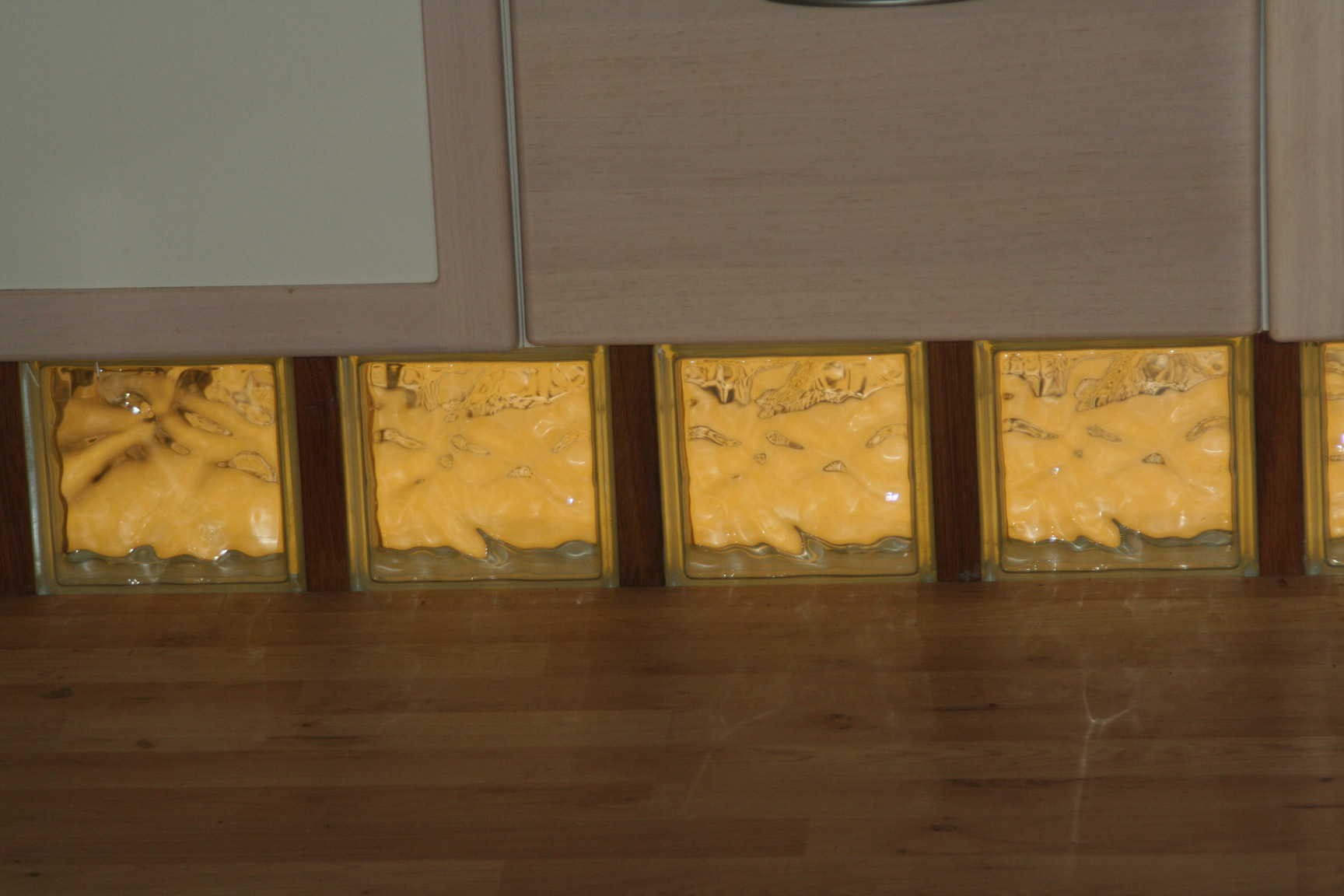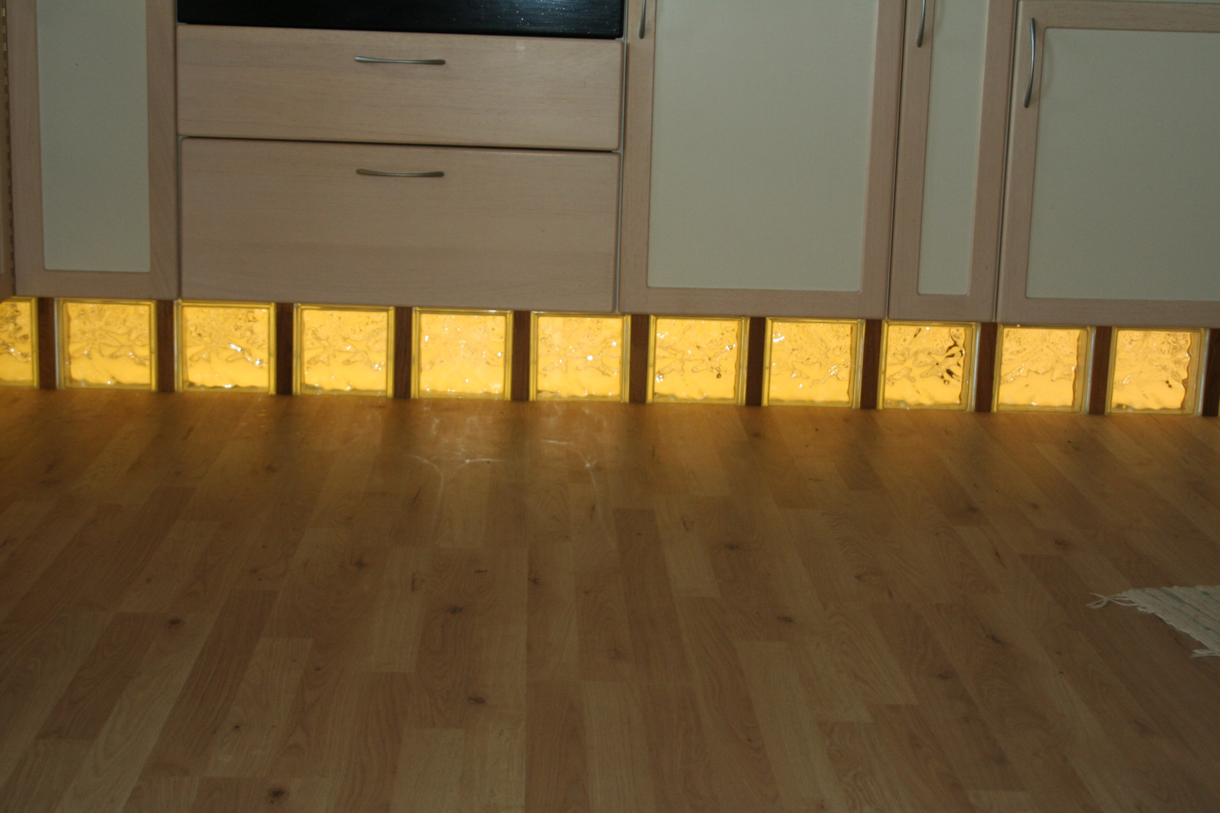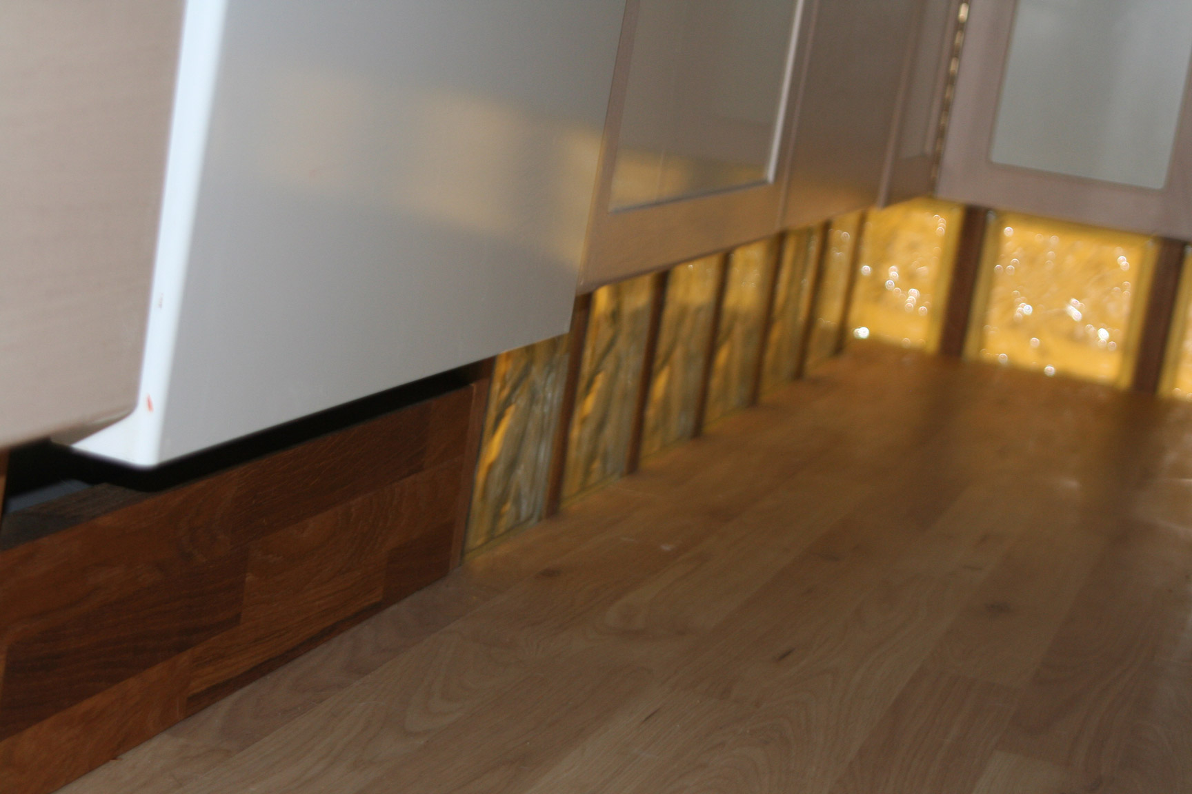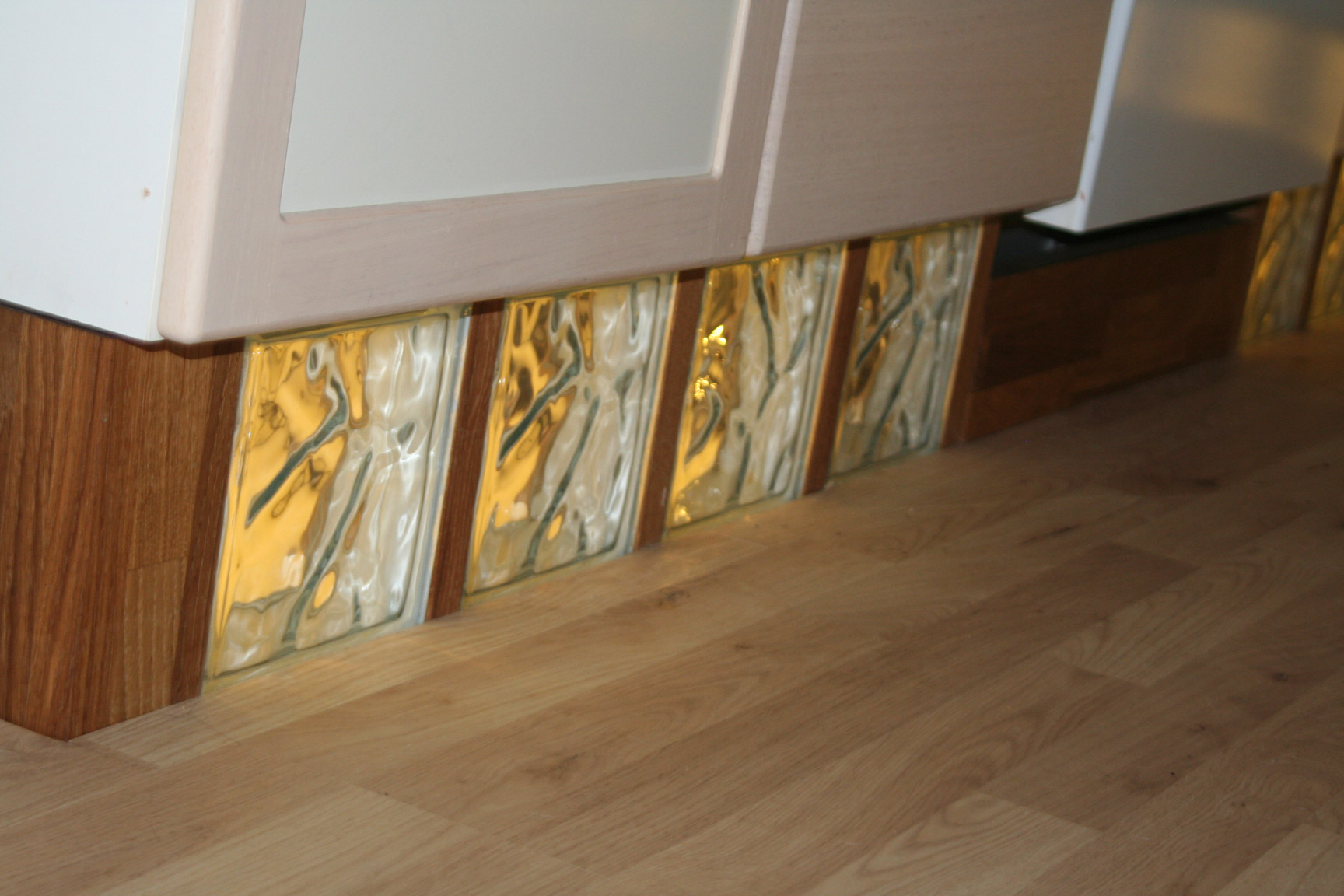 Opsætning af køkkensokkel i glasbyggesten – med ledbånd lys