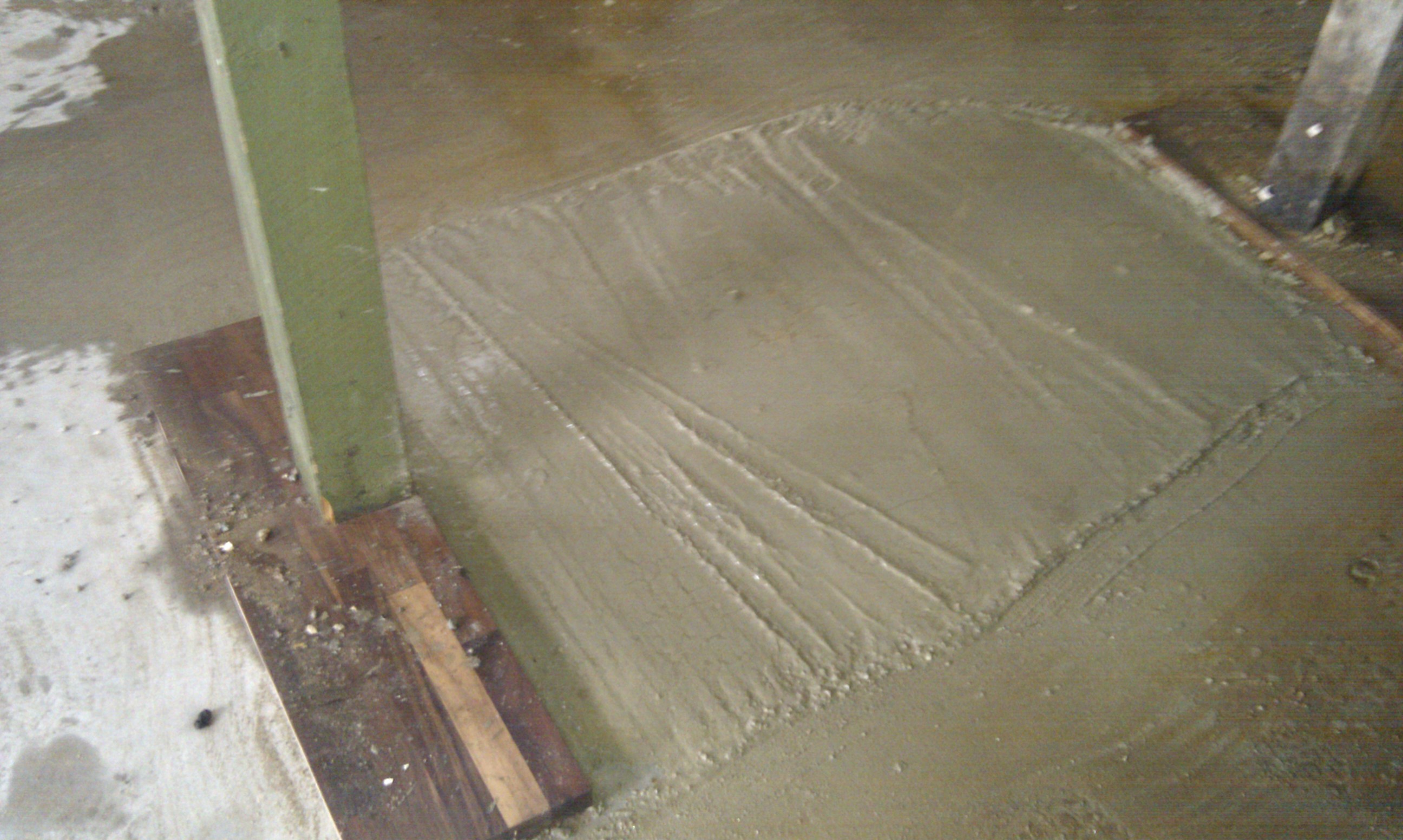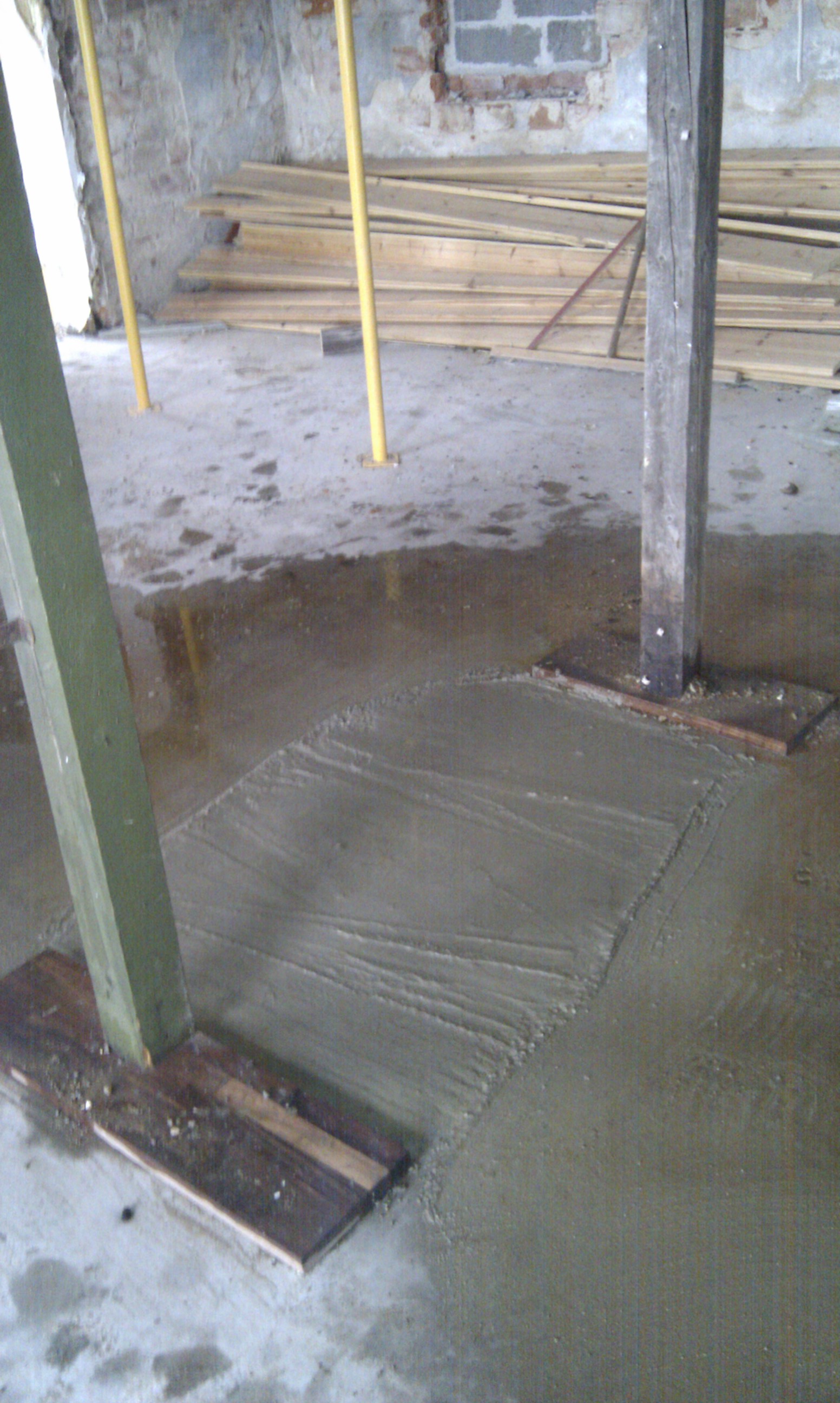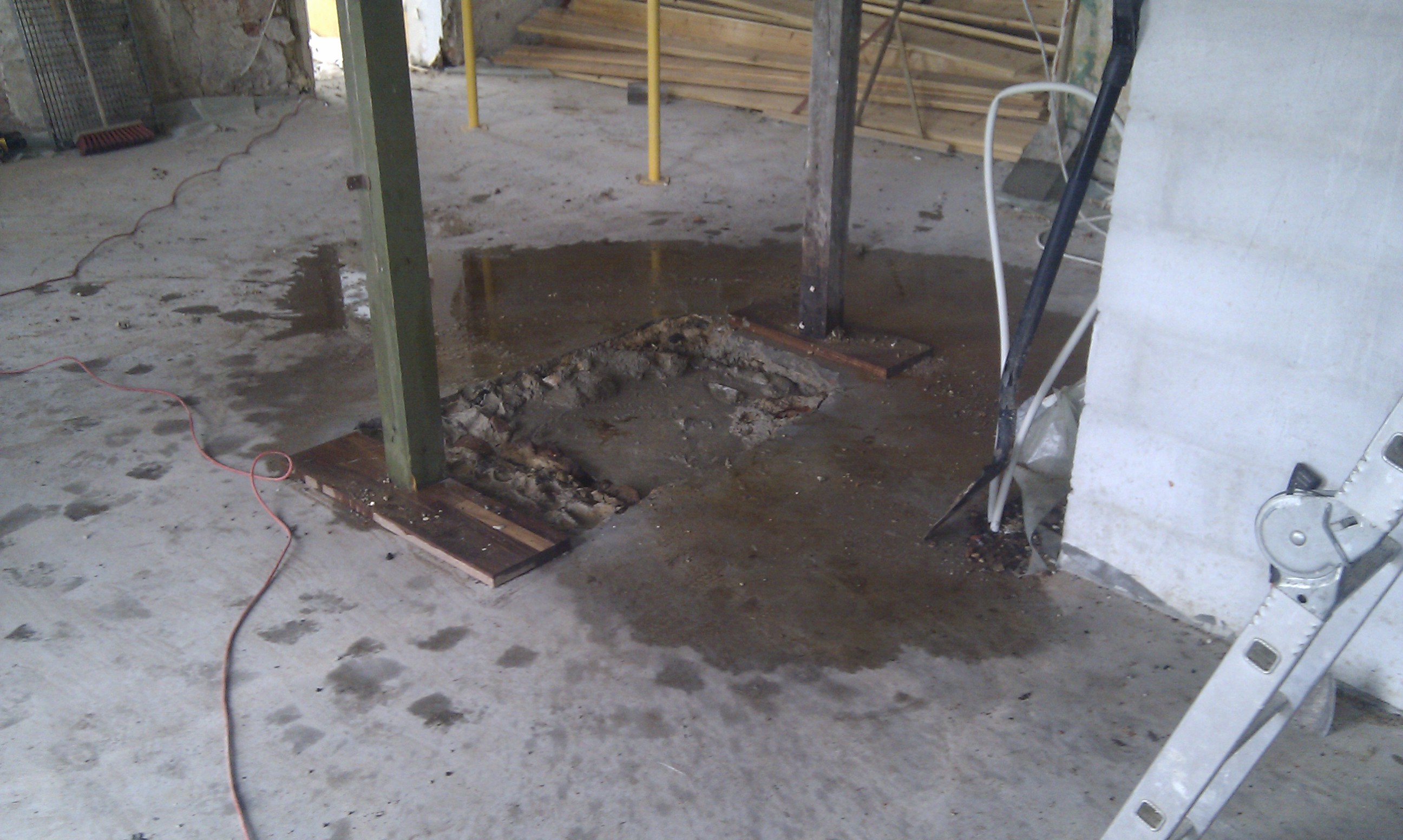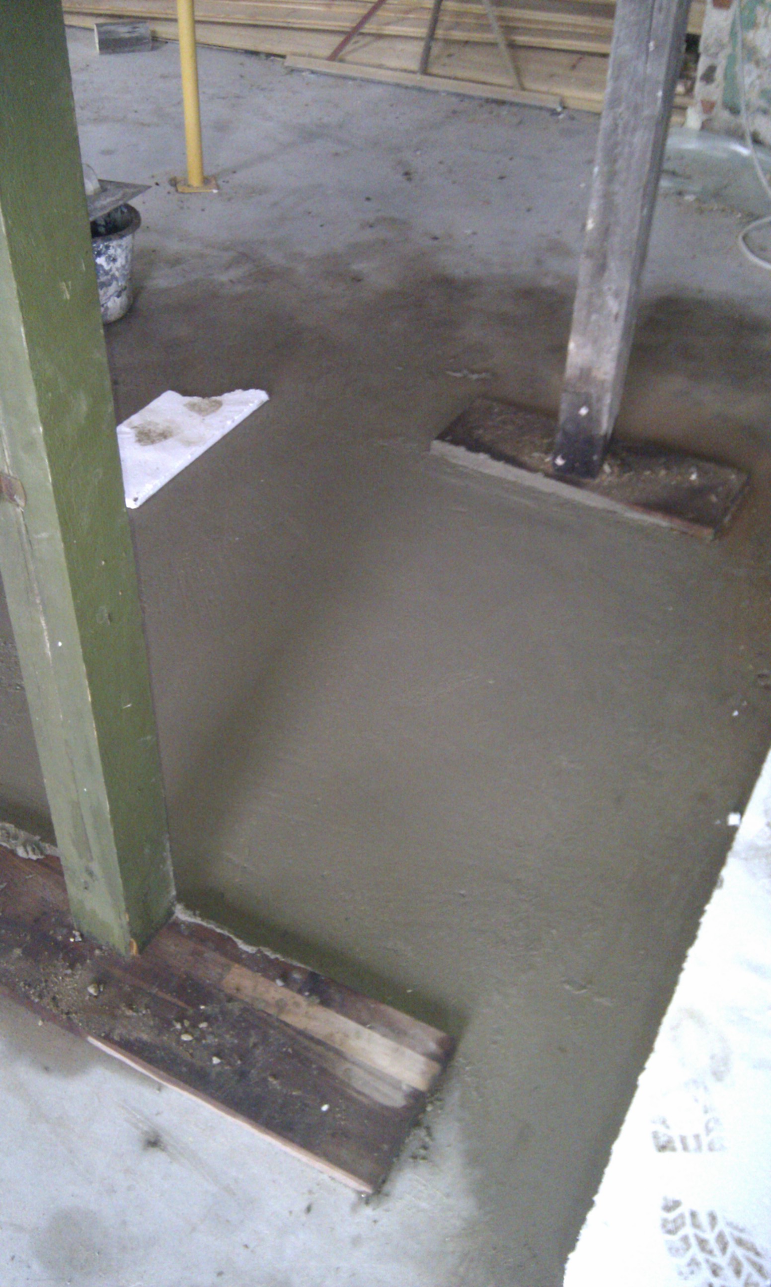 Som det kan ses på billedet, er gulvet skåret ud, og det er klart til at mure kerne og bagvæg op til masseovnen.