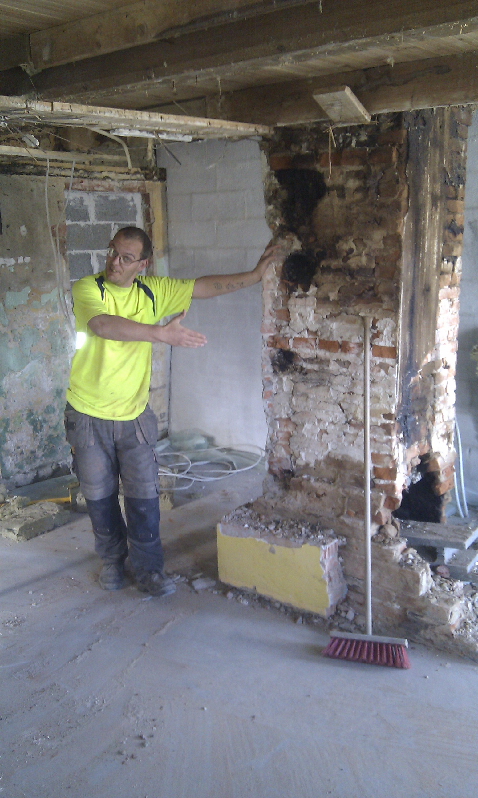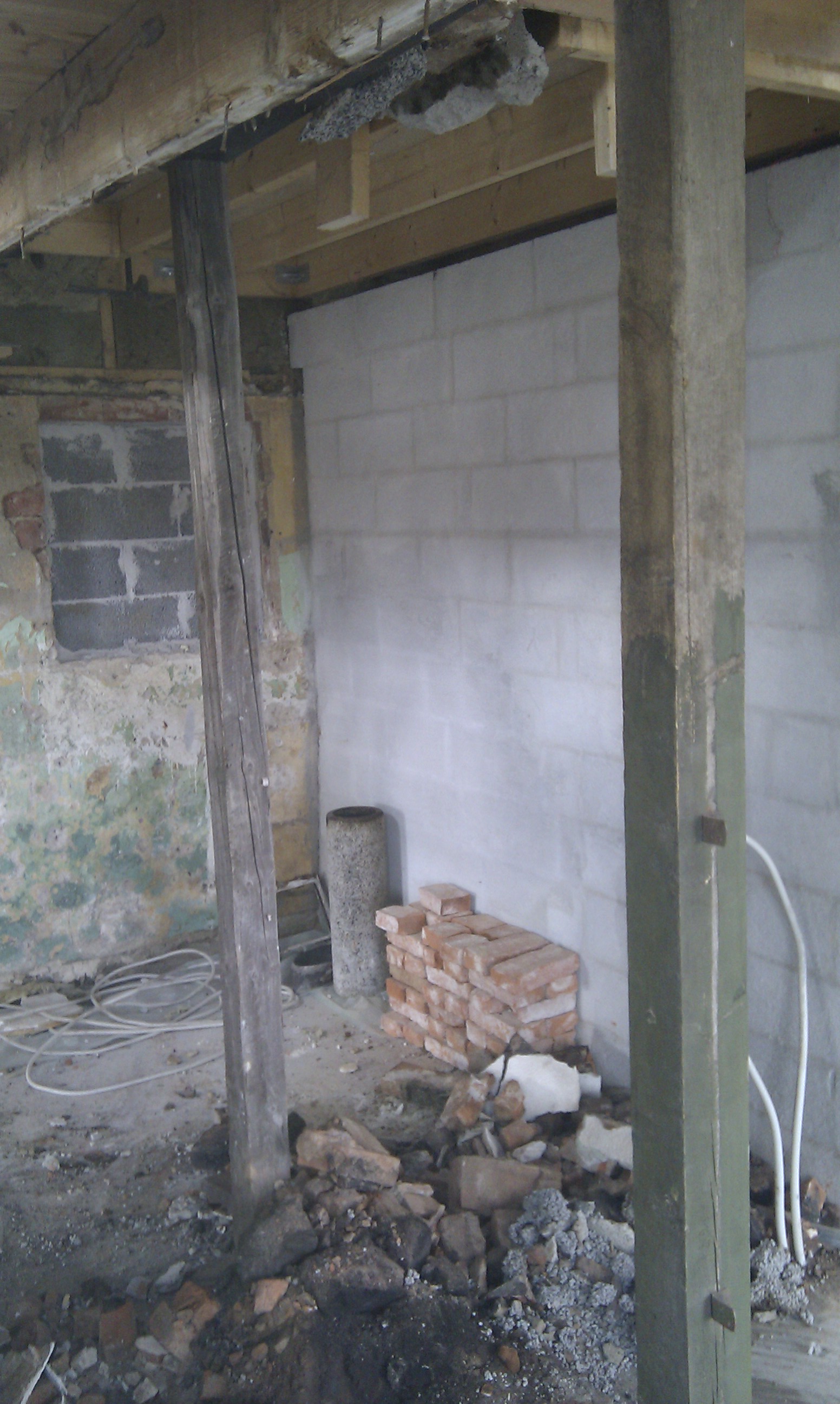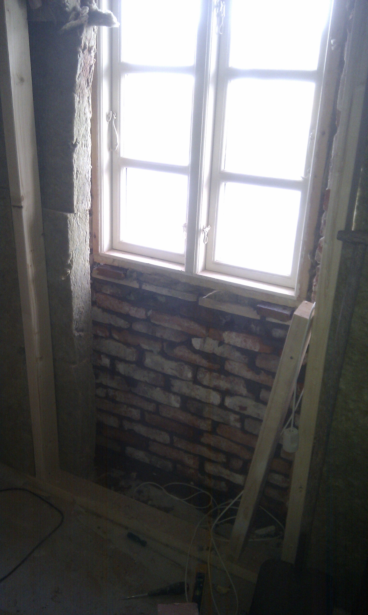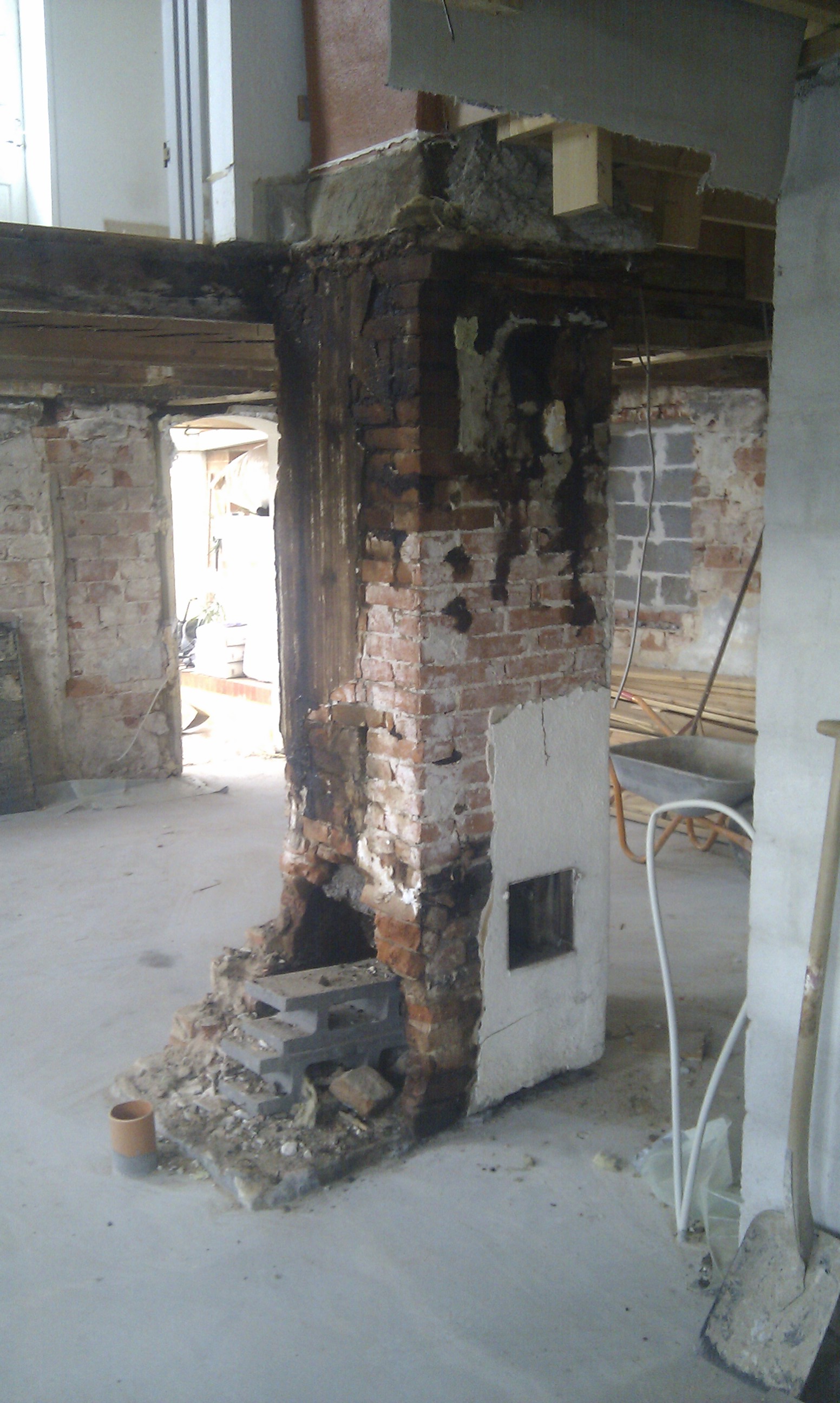 Her kan man bedre se trappen, og hvilken udfordring det ellers ville have været at stå inde under trappen og mure denne væg i fuld højde.