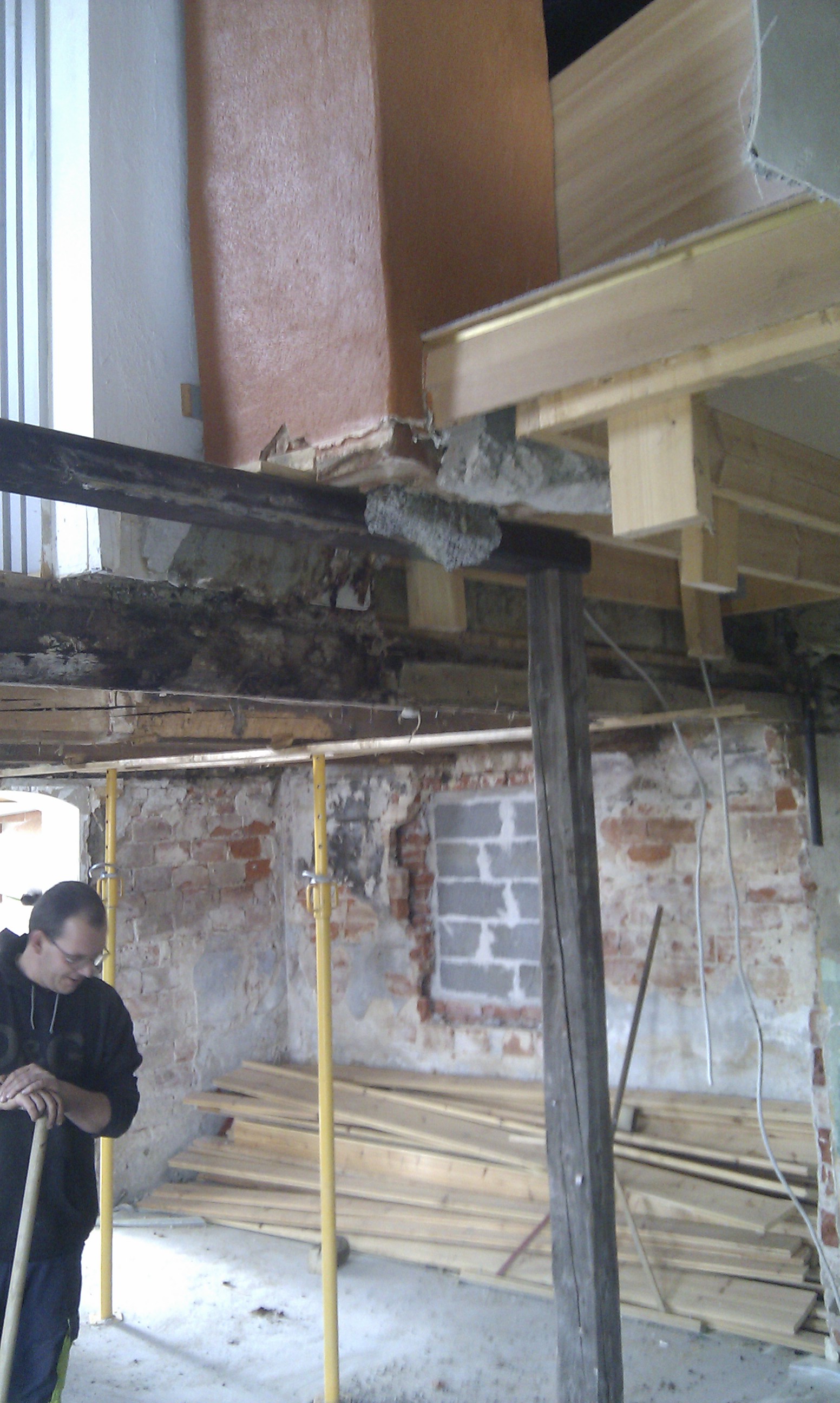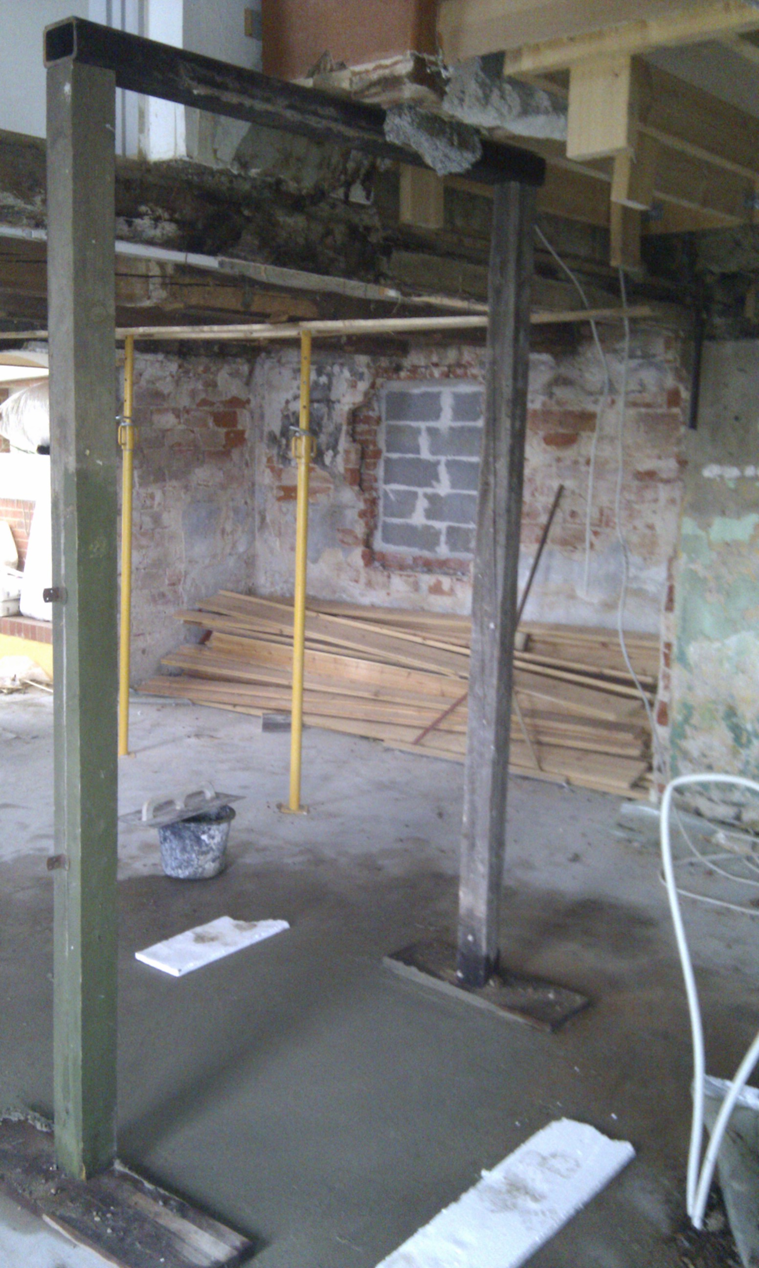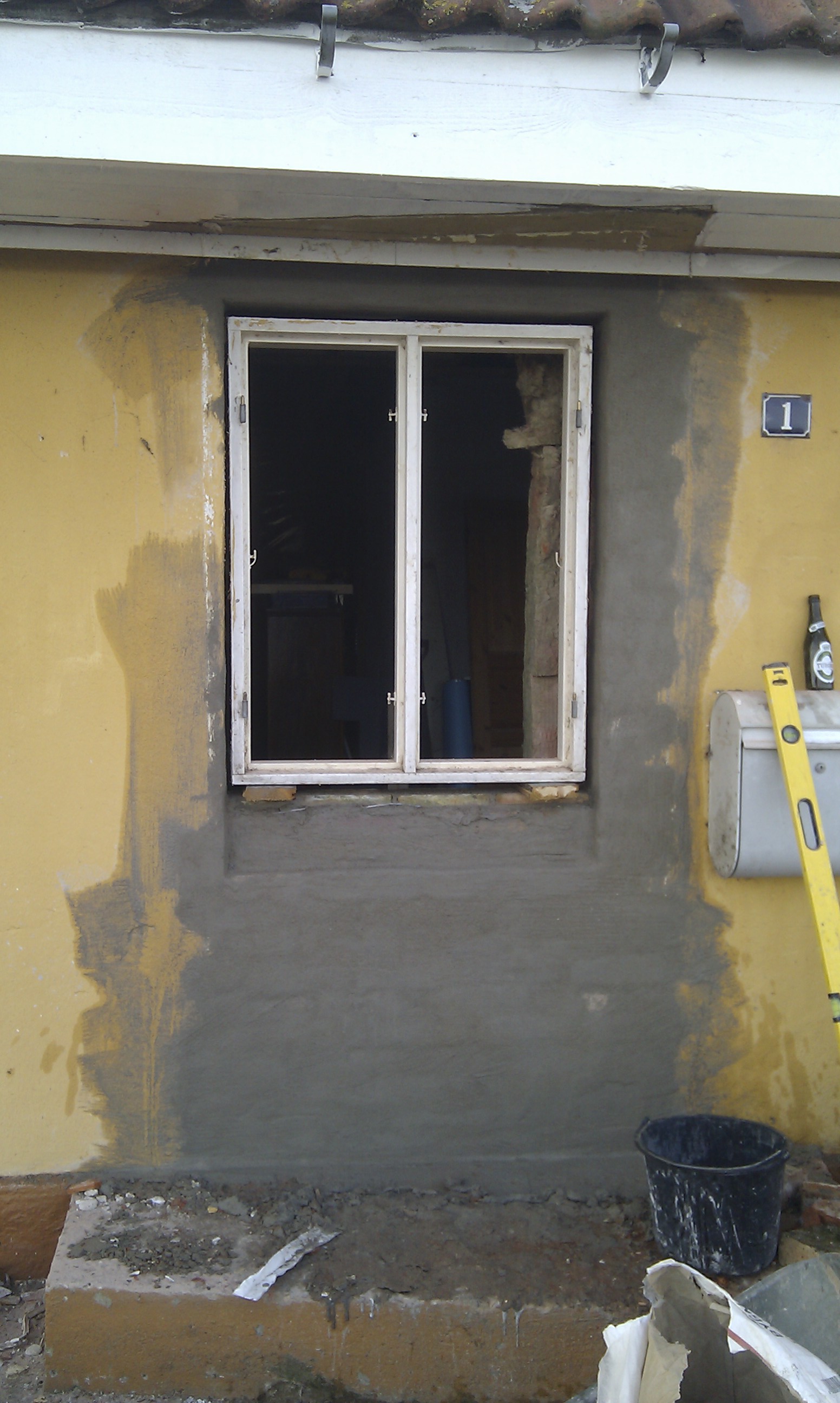 Her kan man bedre se trappen, og hvilken udfordring det ellers ville have været at stå inde under trappen og mure denne væg i fuld højde.