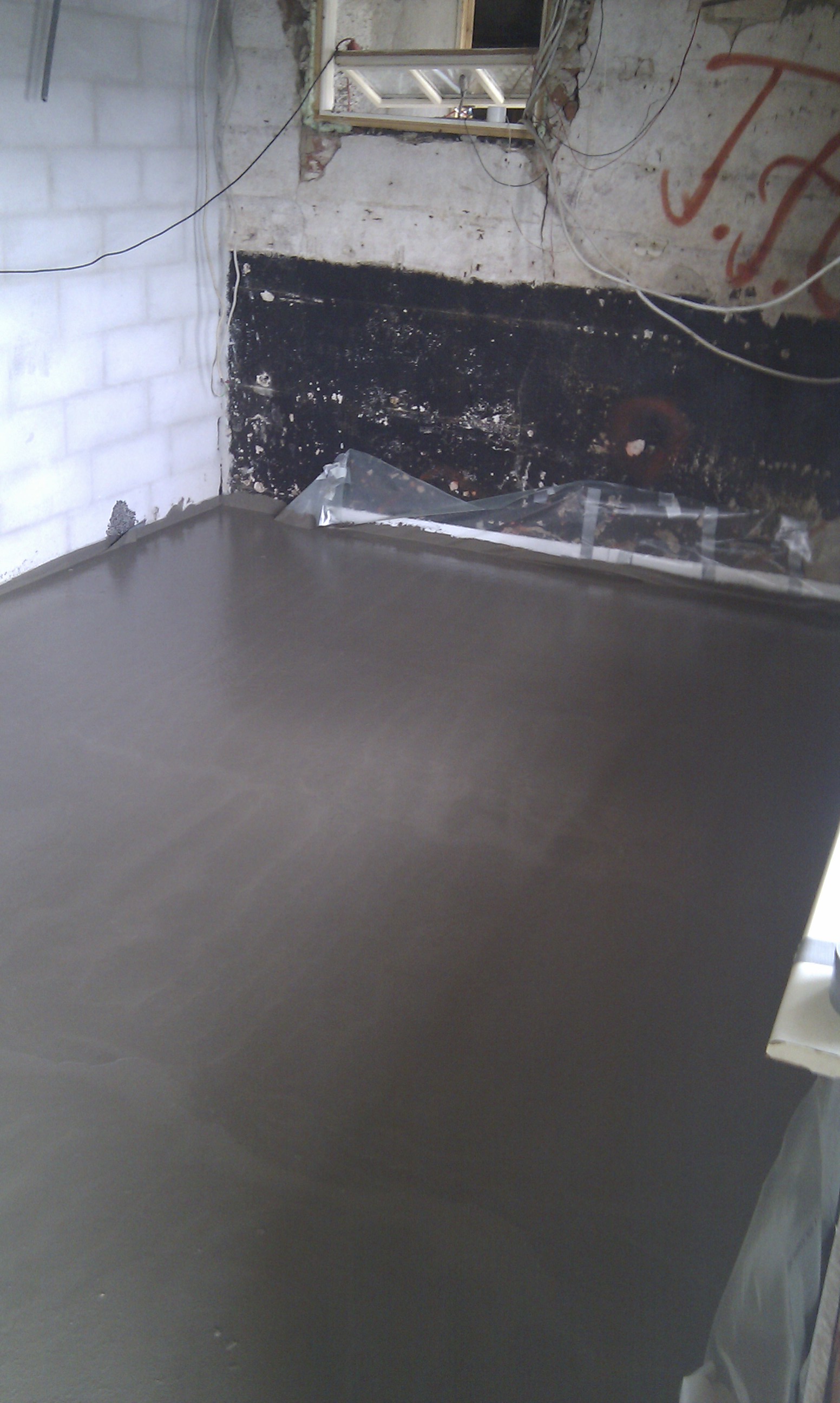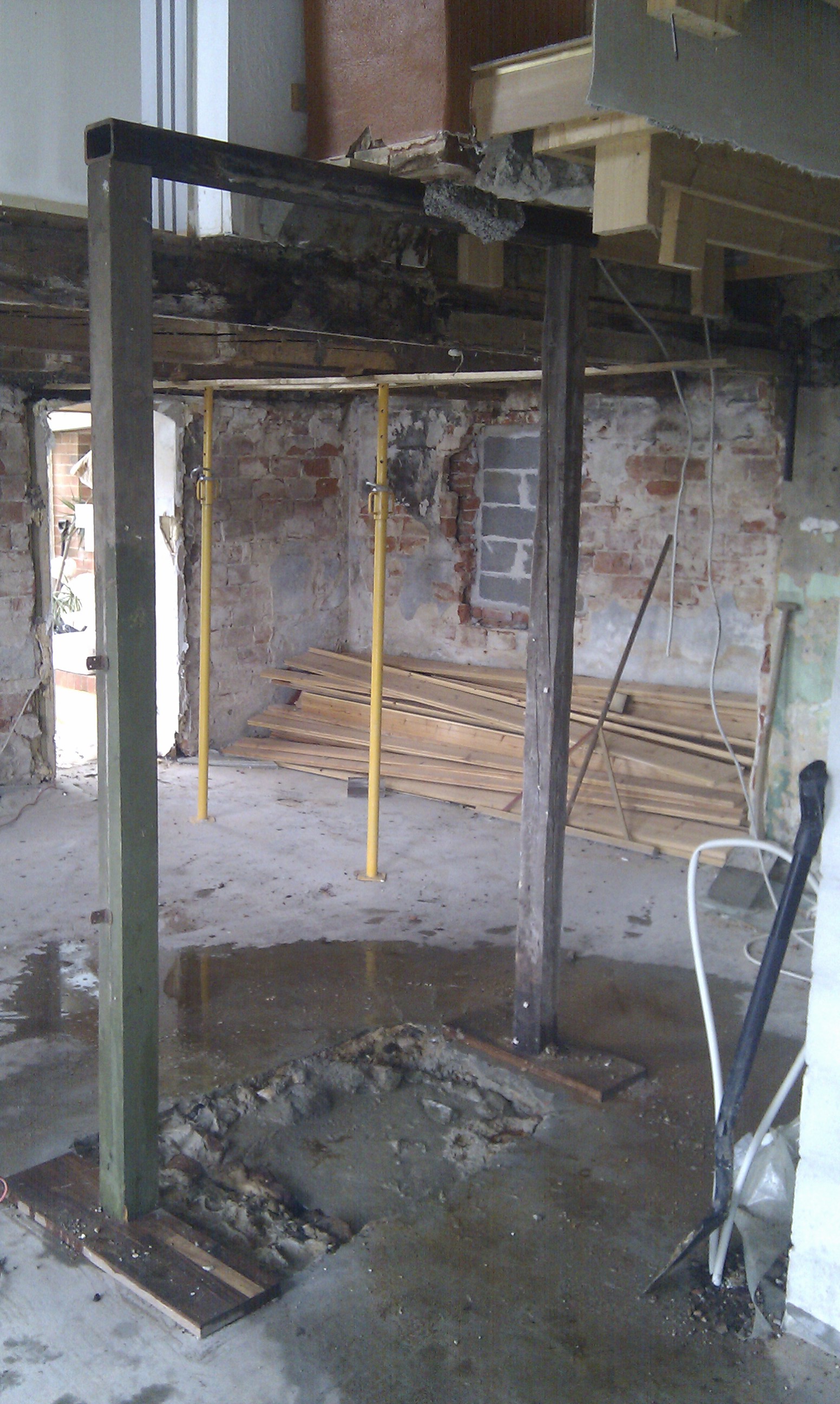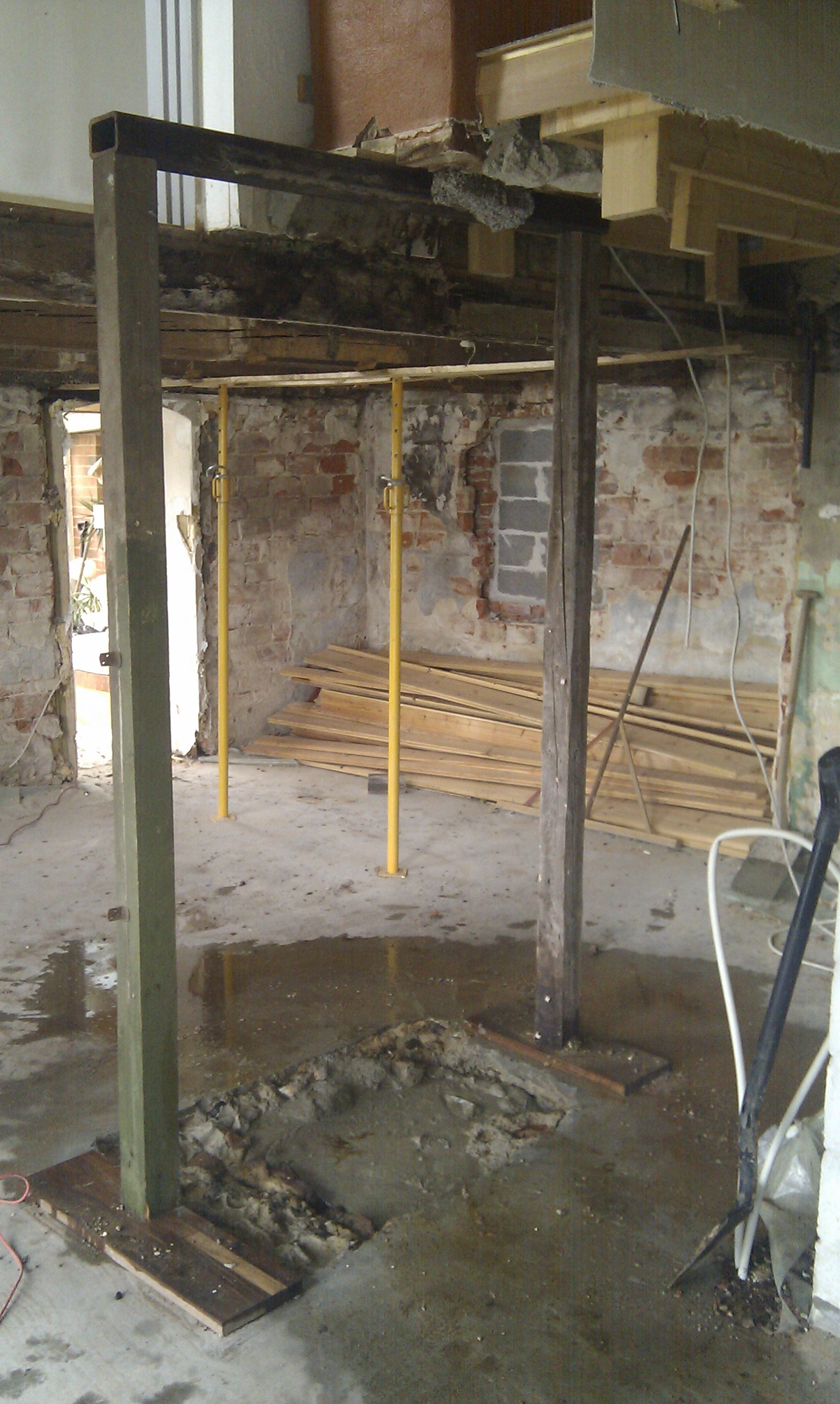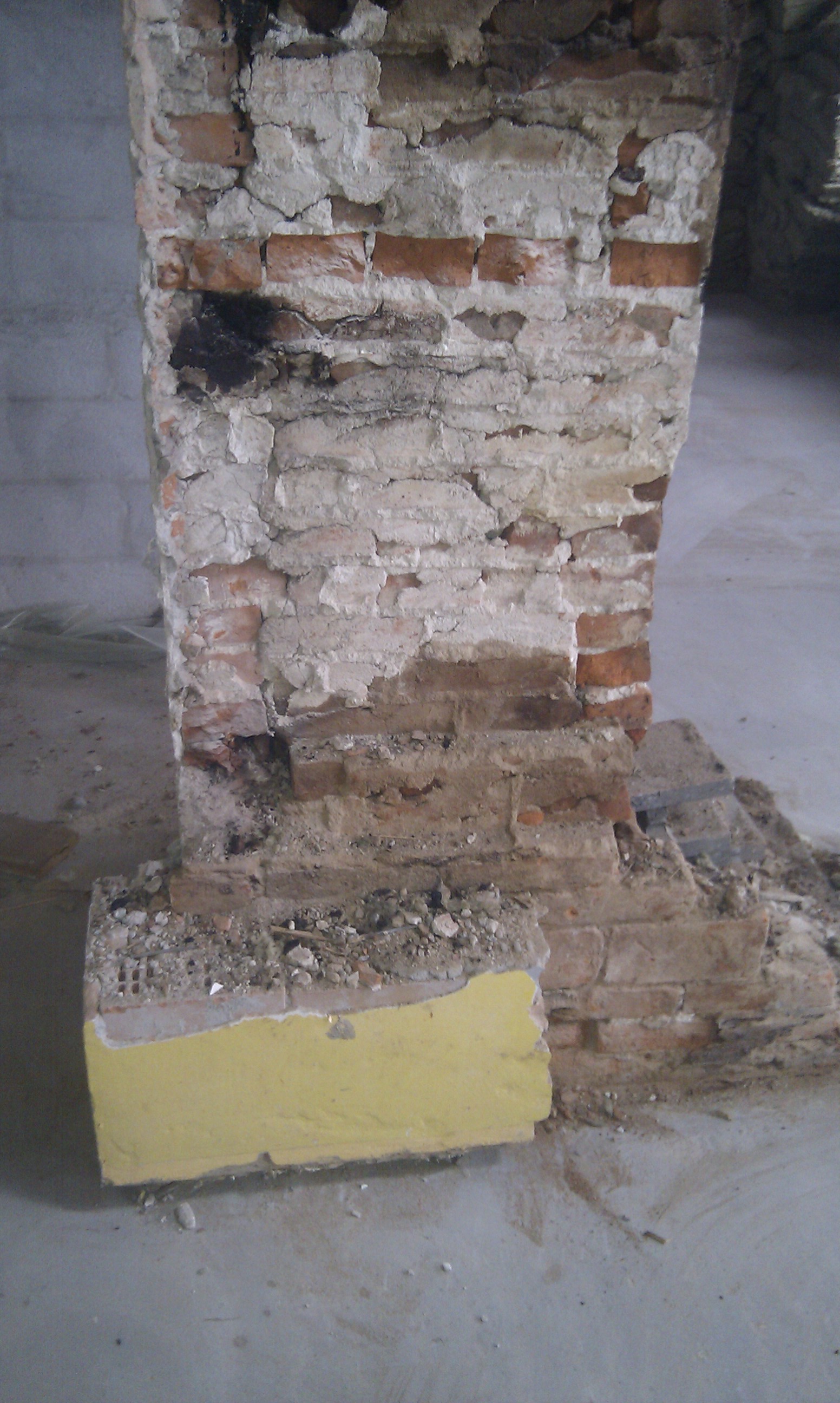 Her kan man bedre se trappen, og hvilken udfordring det ellers ville have været at stå inde under trappen og mure denne væg i fuld højde.