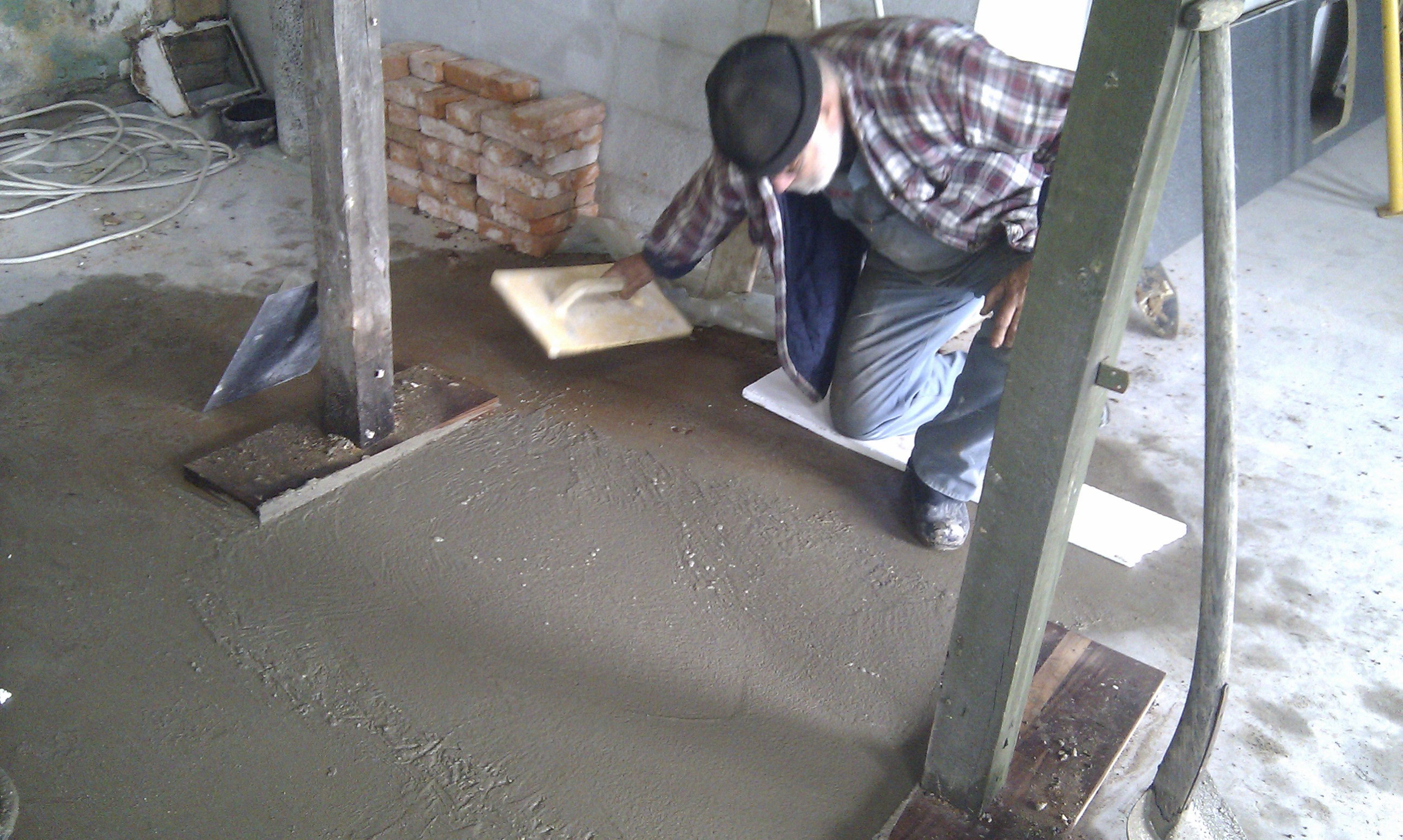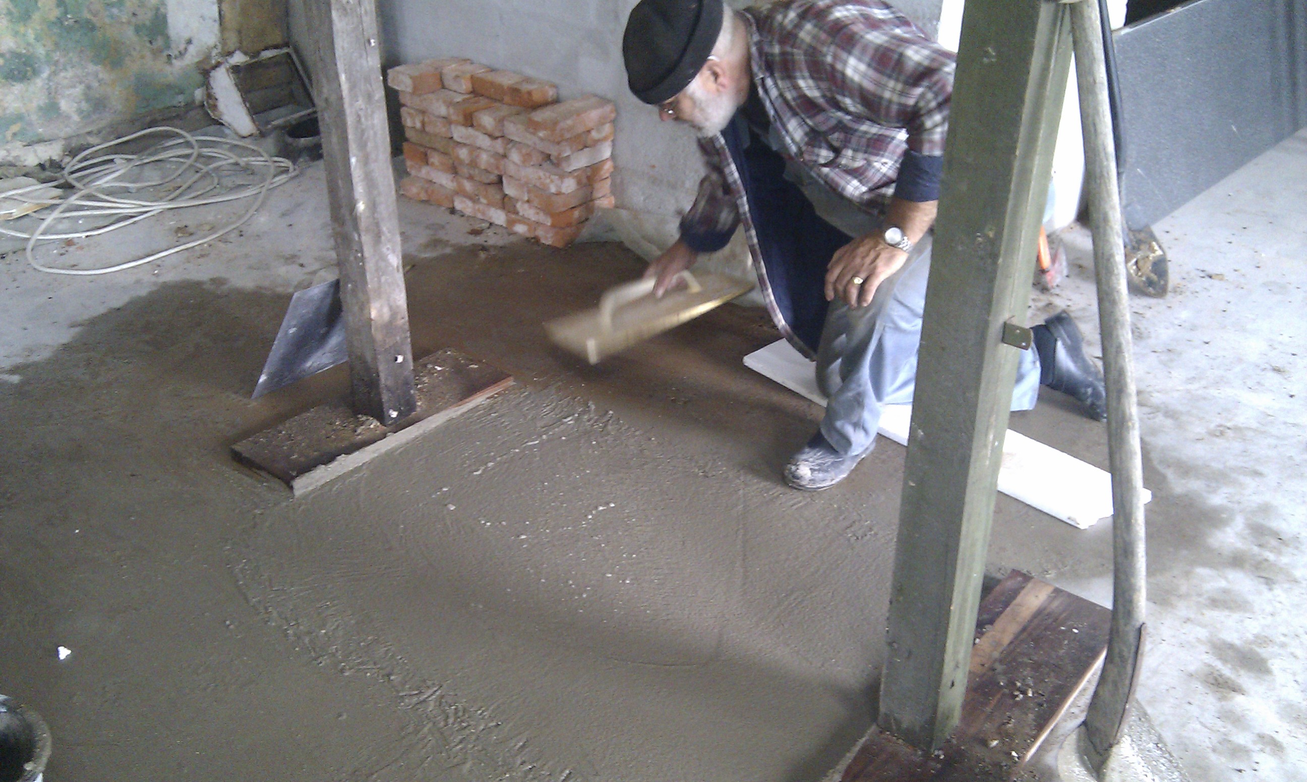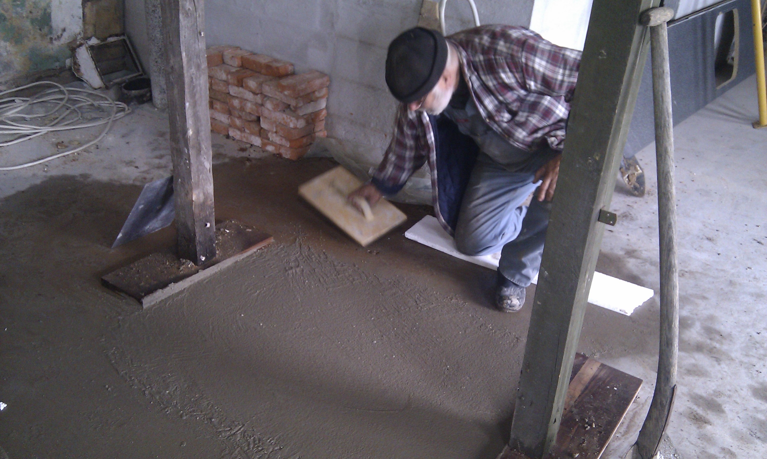 Ovnen vejer cirka 3500 kg, så det har været vigtigt at sikre sig at gulvet kan bære vægten – se støbning af fundament til masseovn.