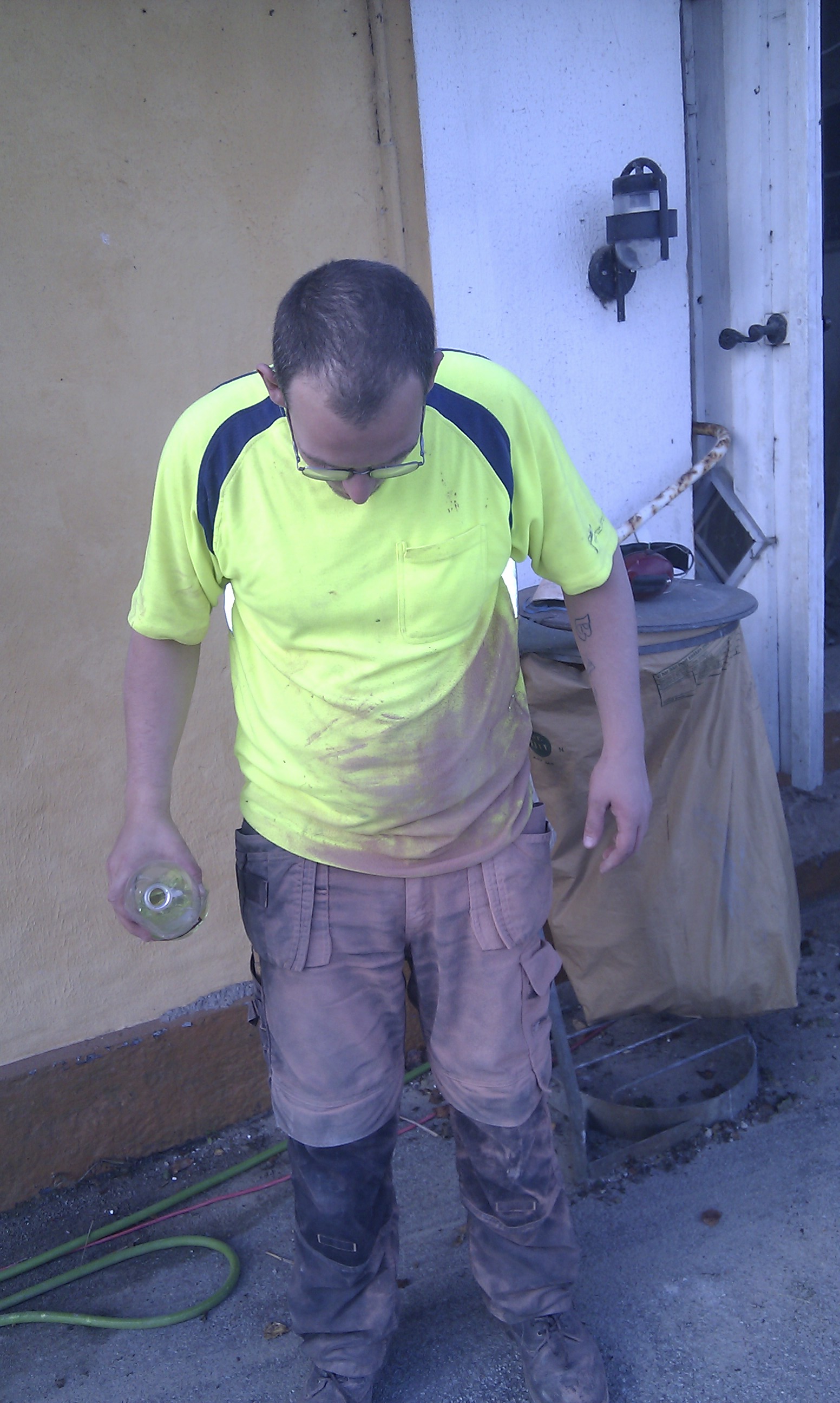 Masseovn manden har sit udstyr i orden, medbringer en diamant skærende rundsav beregnet til at skære sten over, så de enkelte dele tilpasses helt nøjagtigt som vi gerne vil have det.