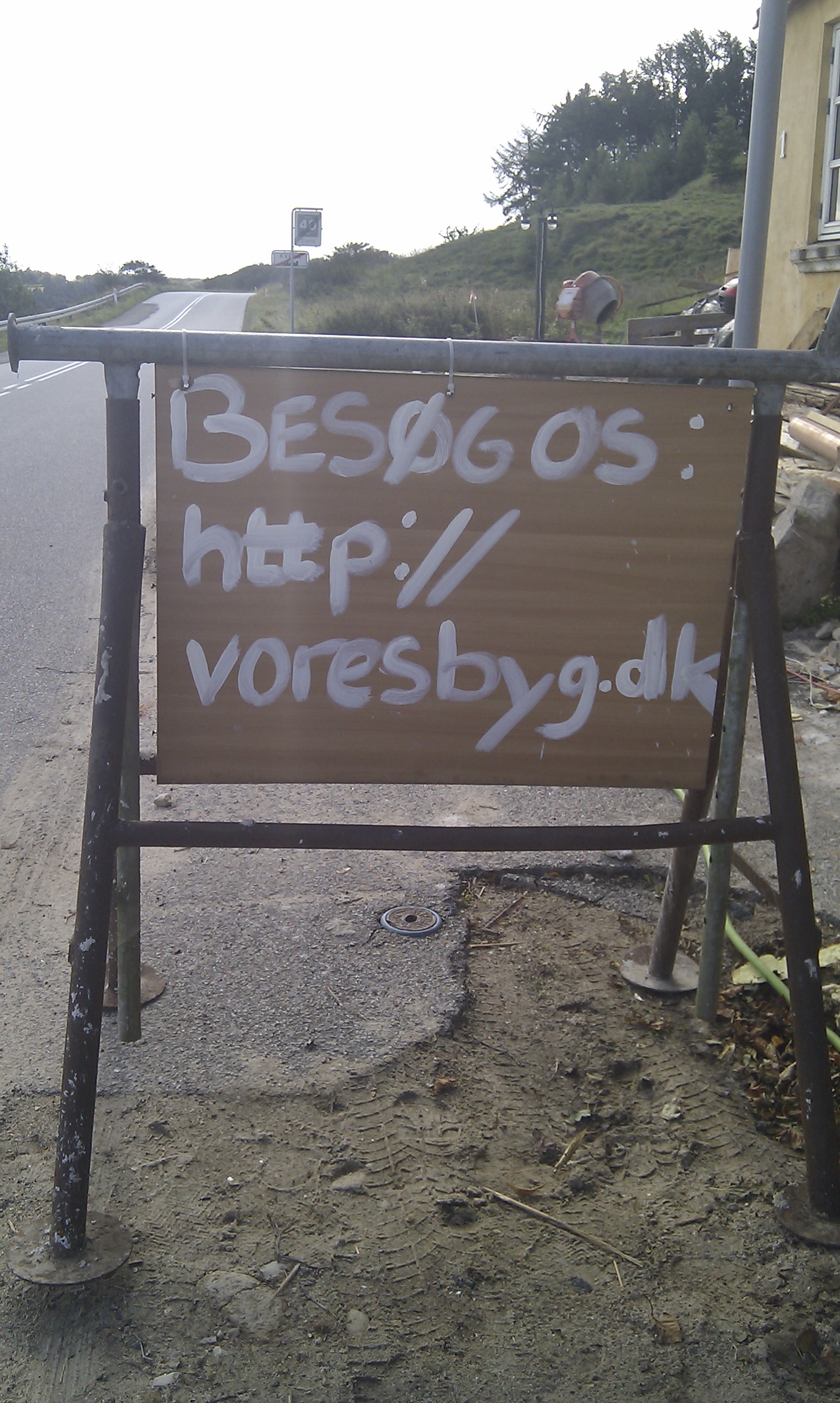 I mens jeg stod og prøvede at tage et billede af røgen – som så selvfølgelig ikke var muligt, tog jeg dette billede af Berit’s skilt som vi stillede ud til vejen igen.