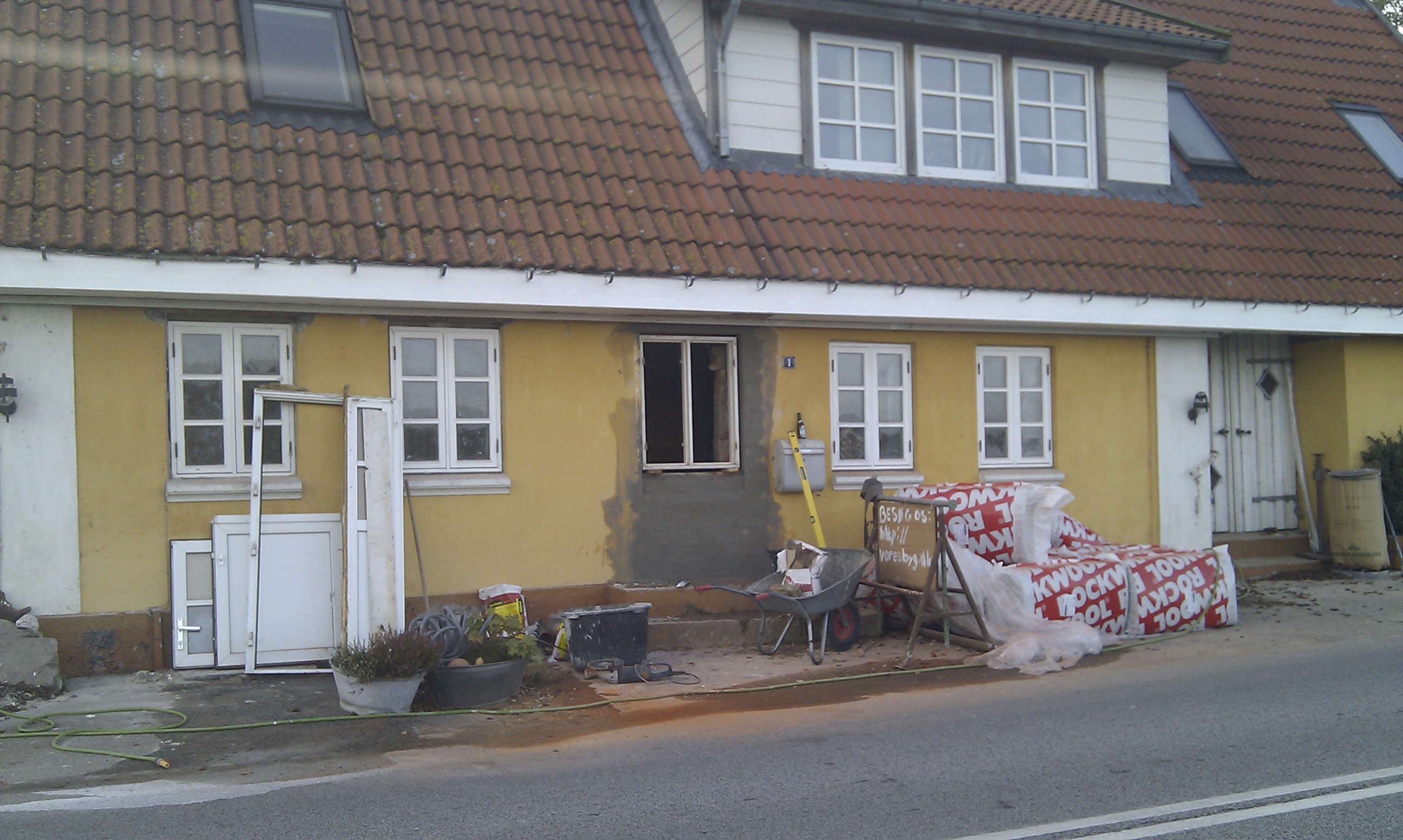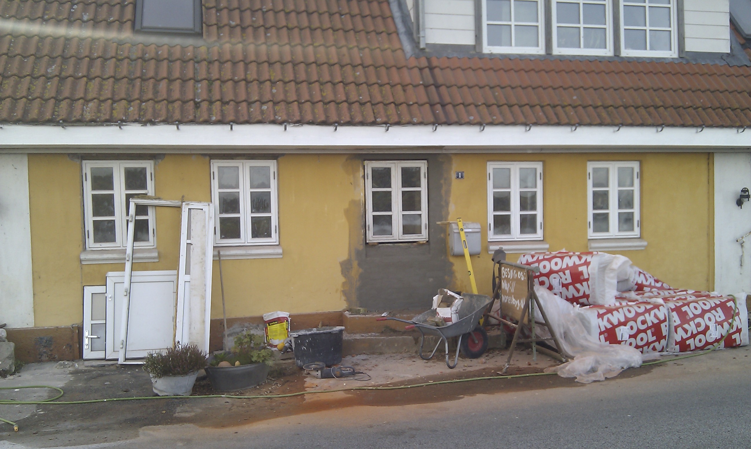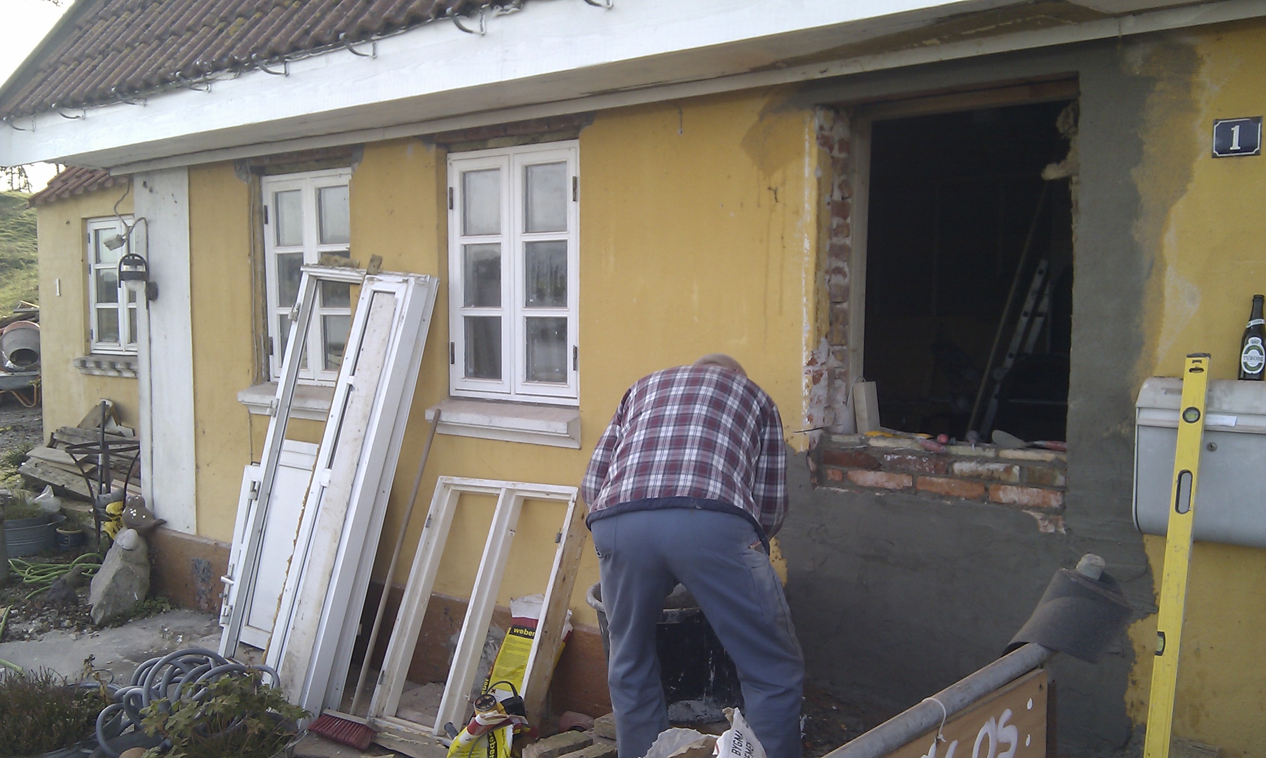 Bagvæggen mures først op, da masseovnen skal stå ind under trappen.