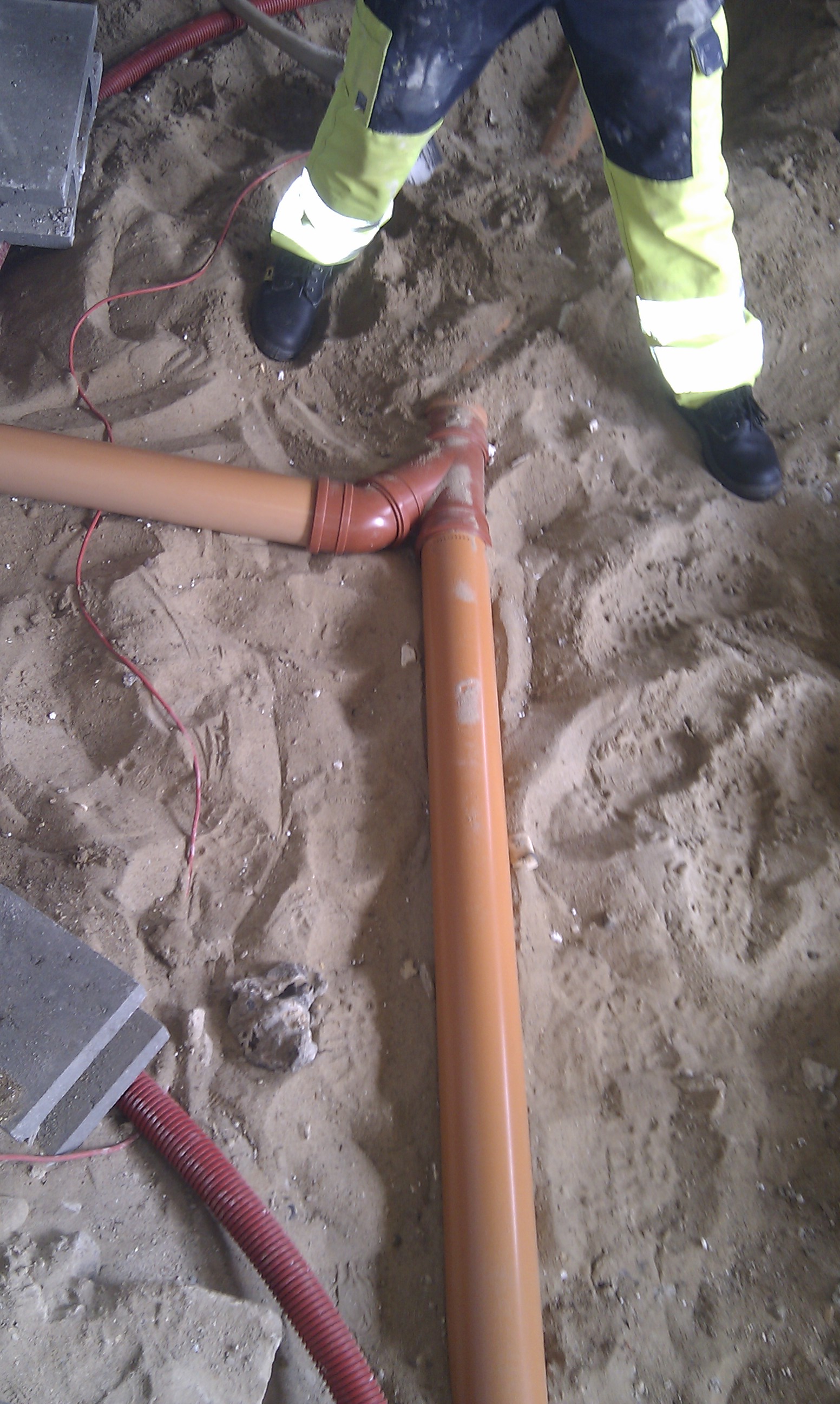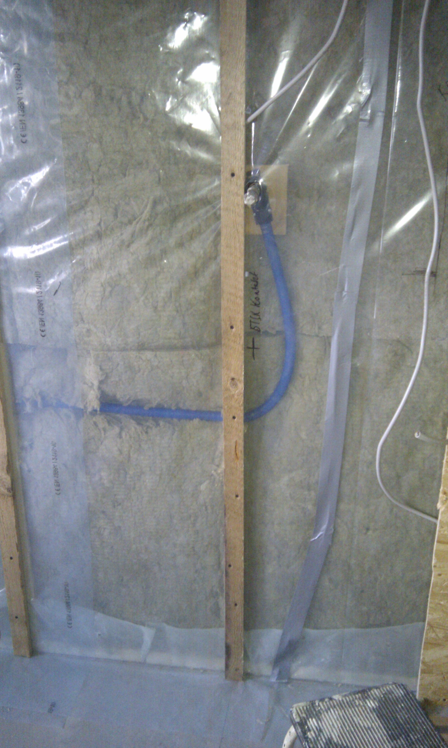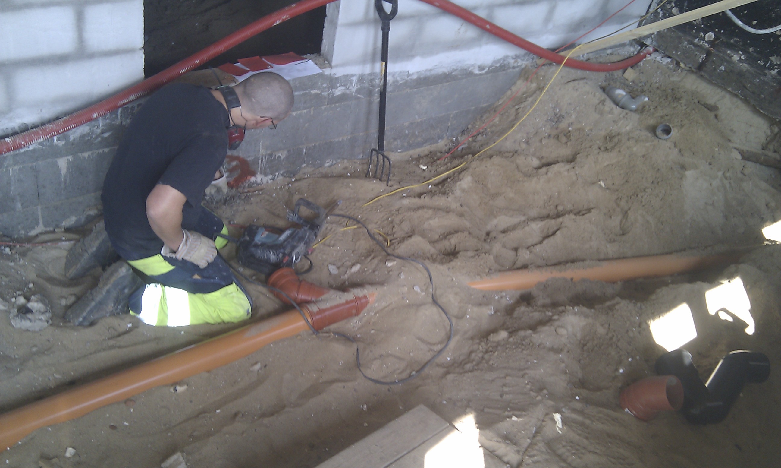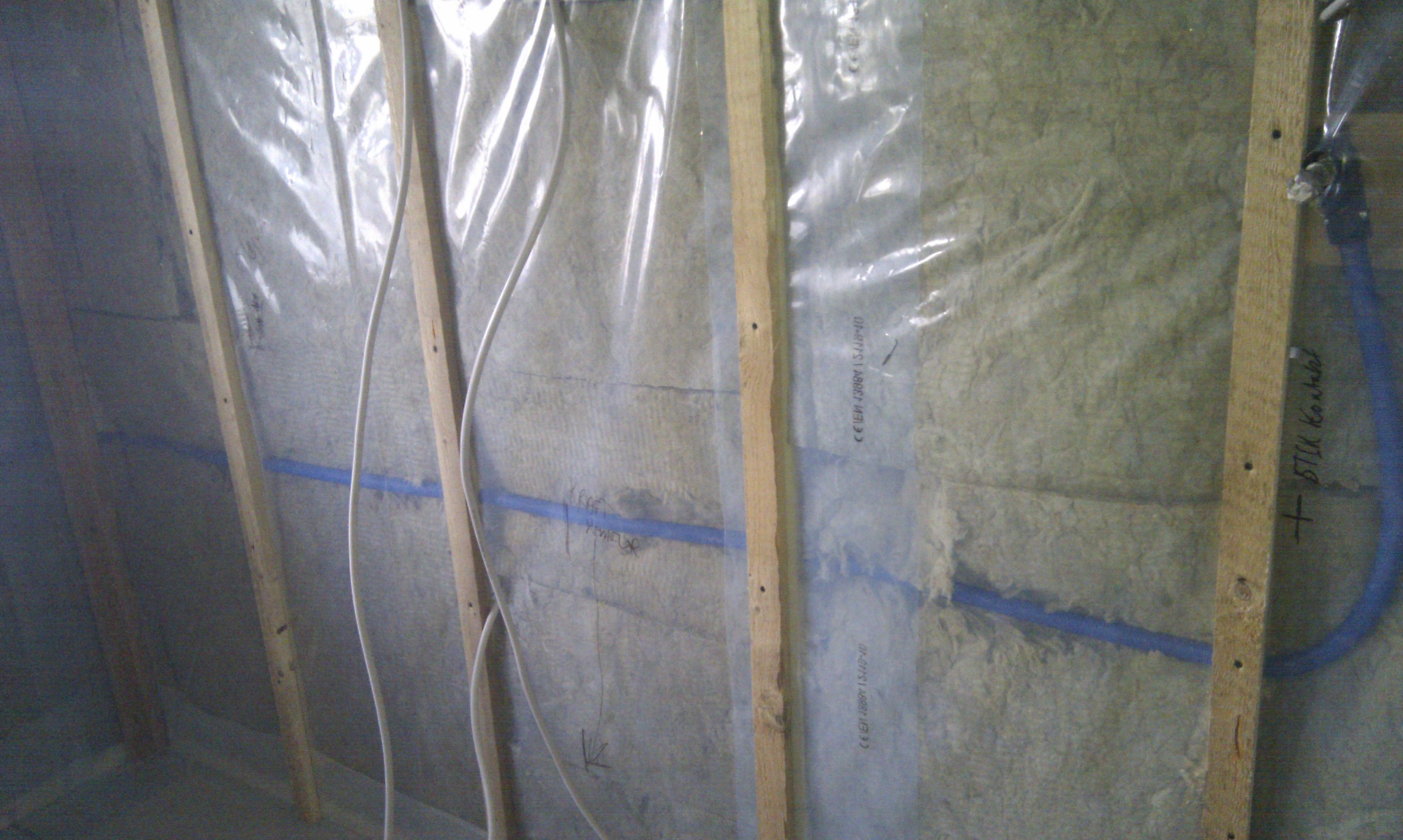 Så vi startede med at få ført PEX røret i væggen.