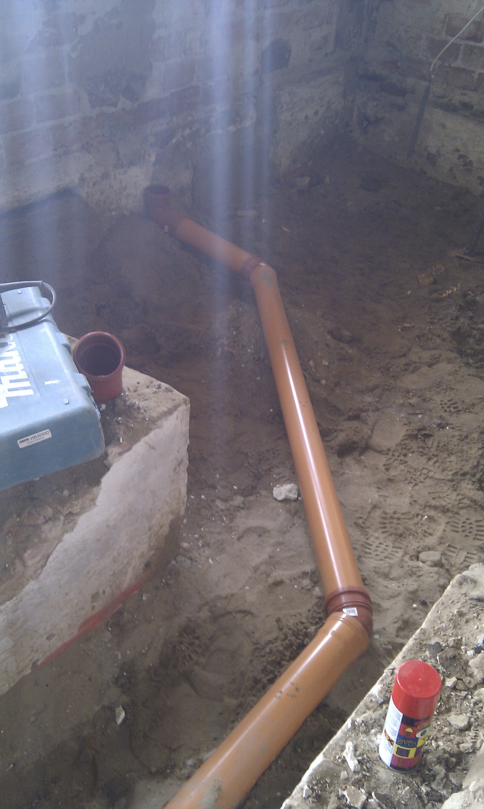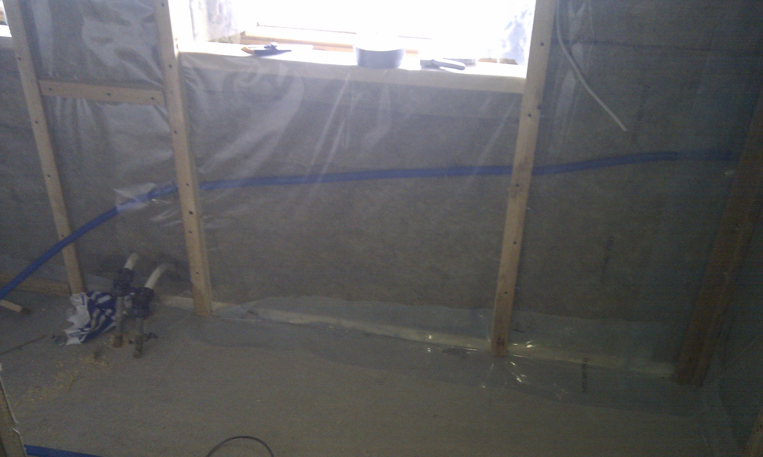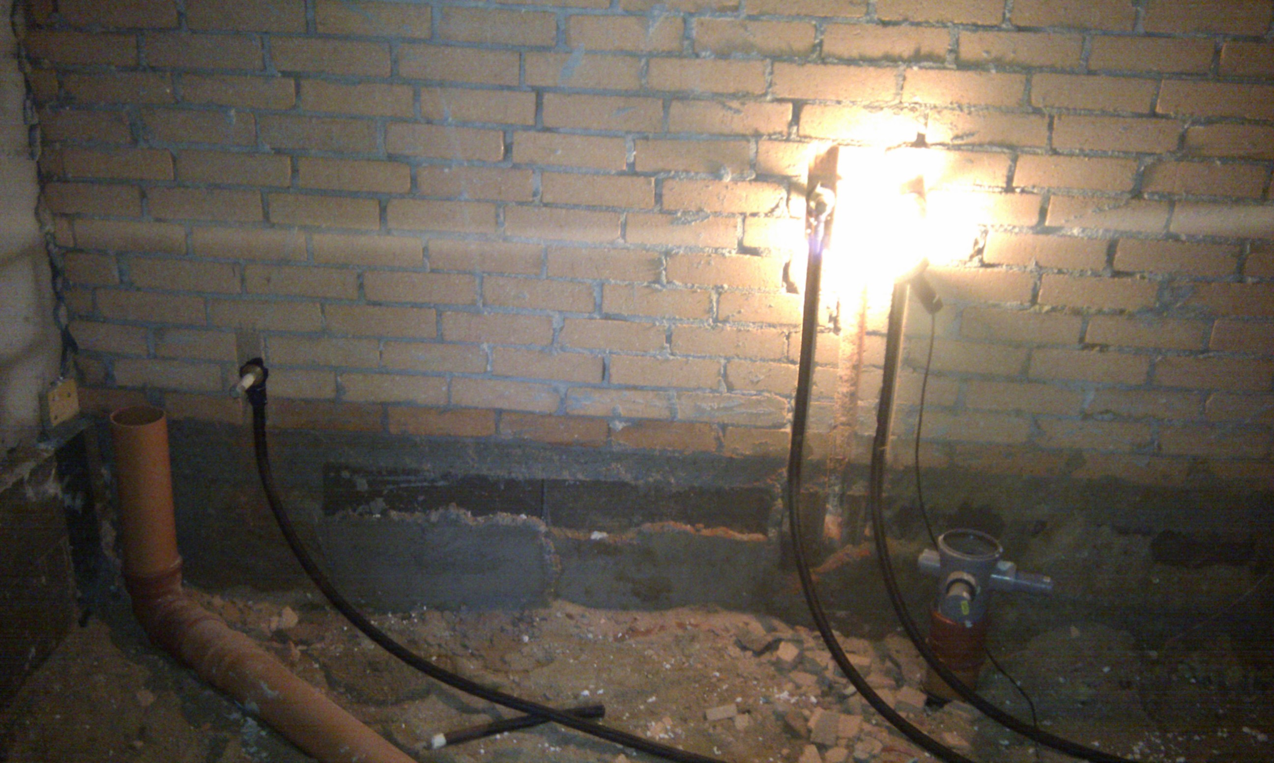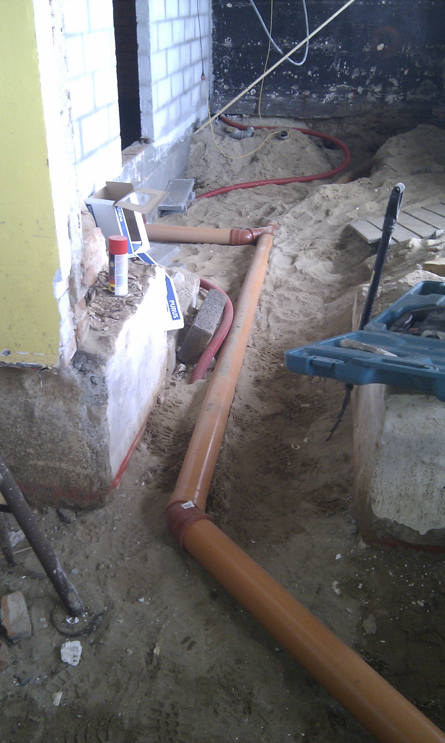 Så vi startede med at få ført PEX røret i væggen.