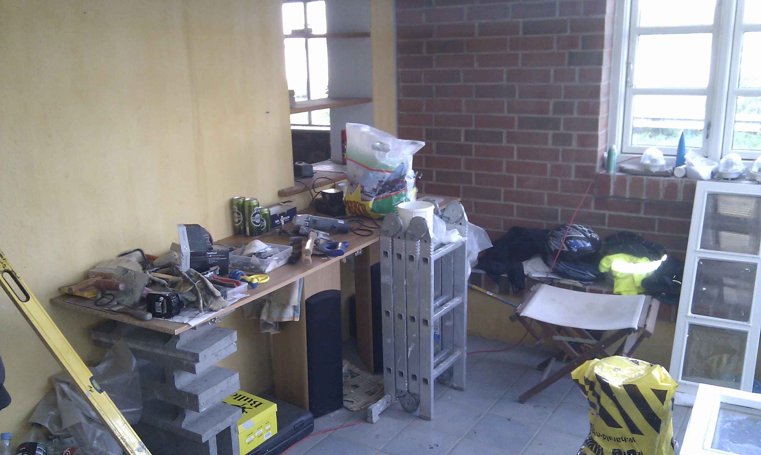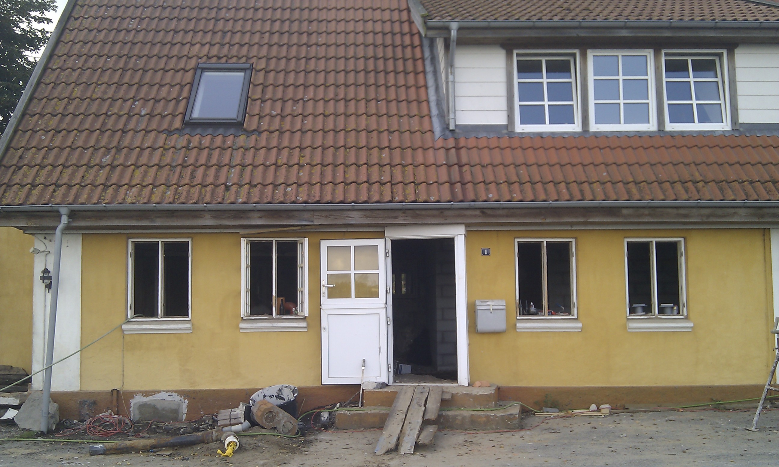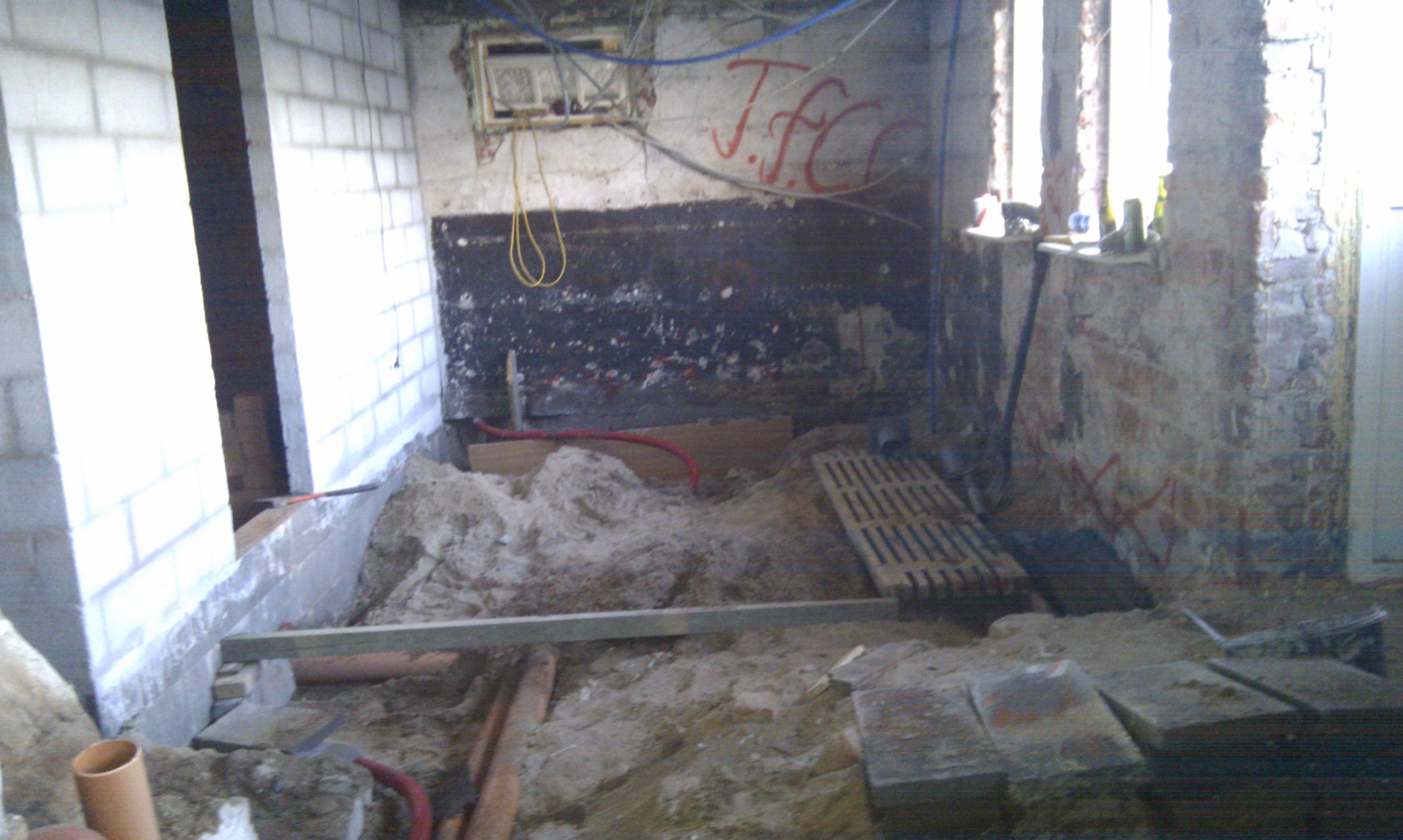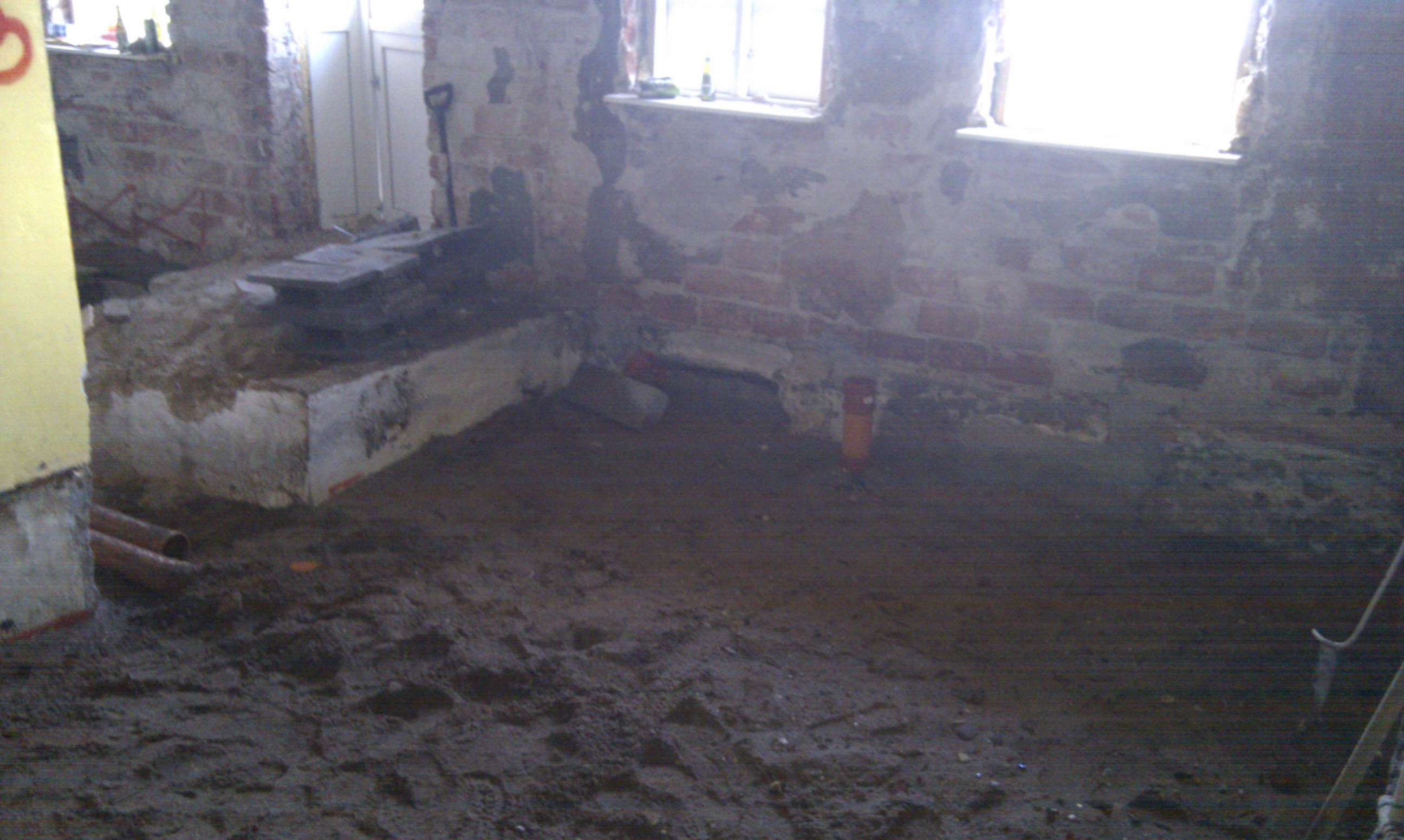 Så vi startede med at få ført PEX røret i væggen.